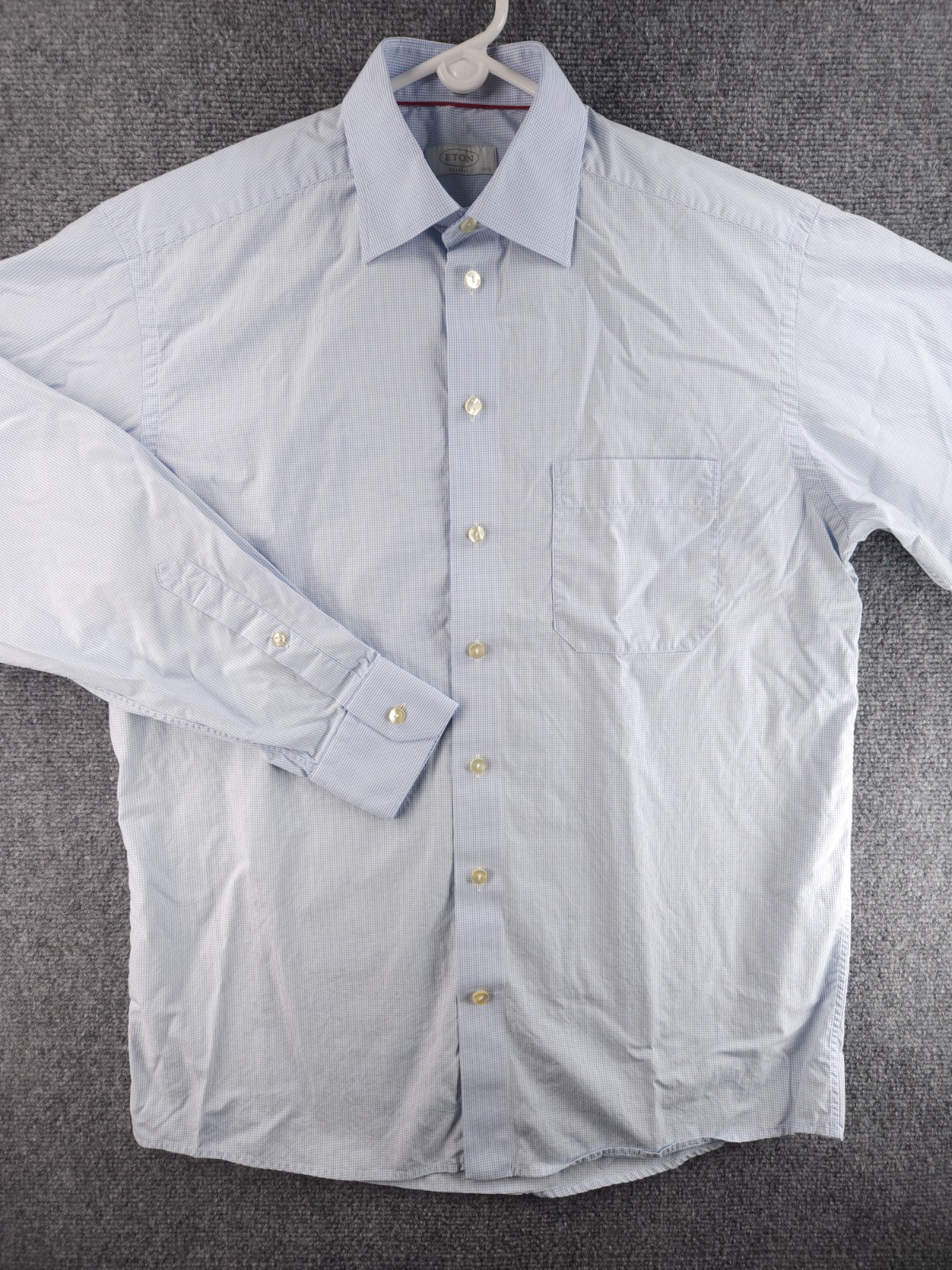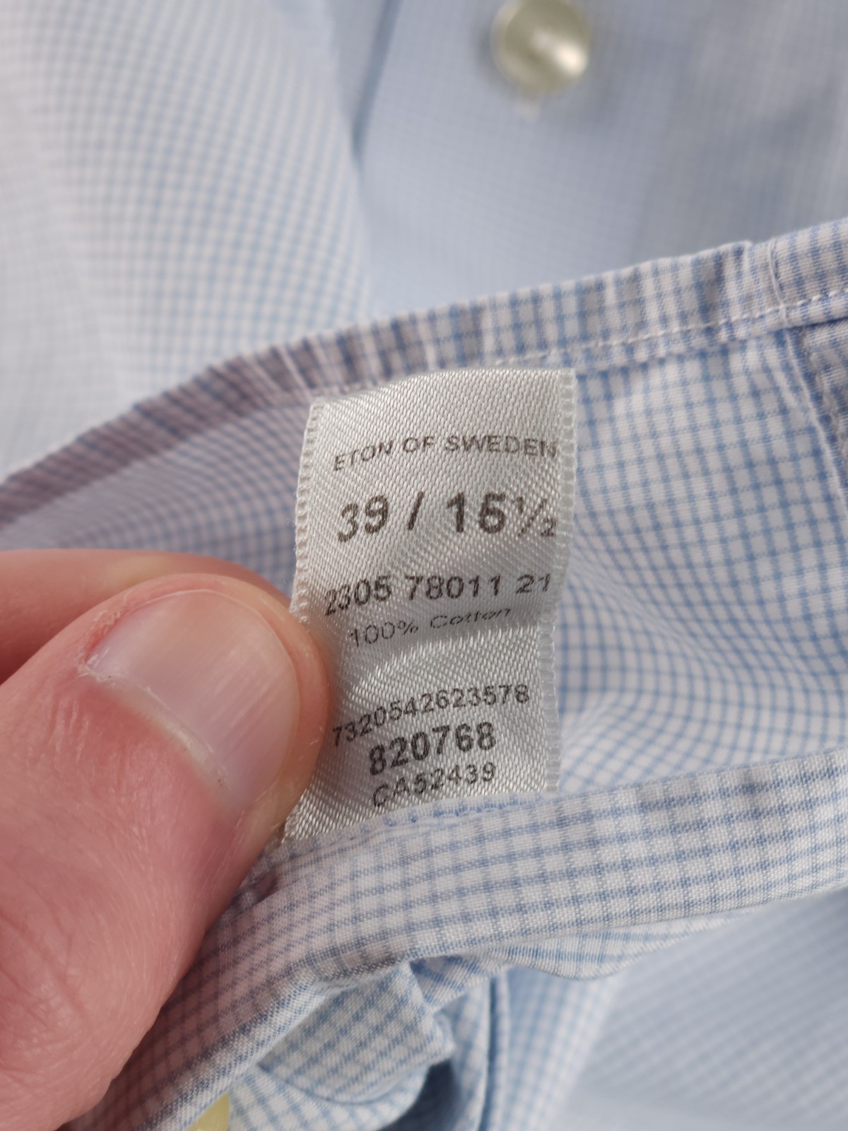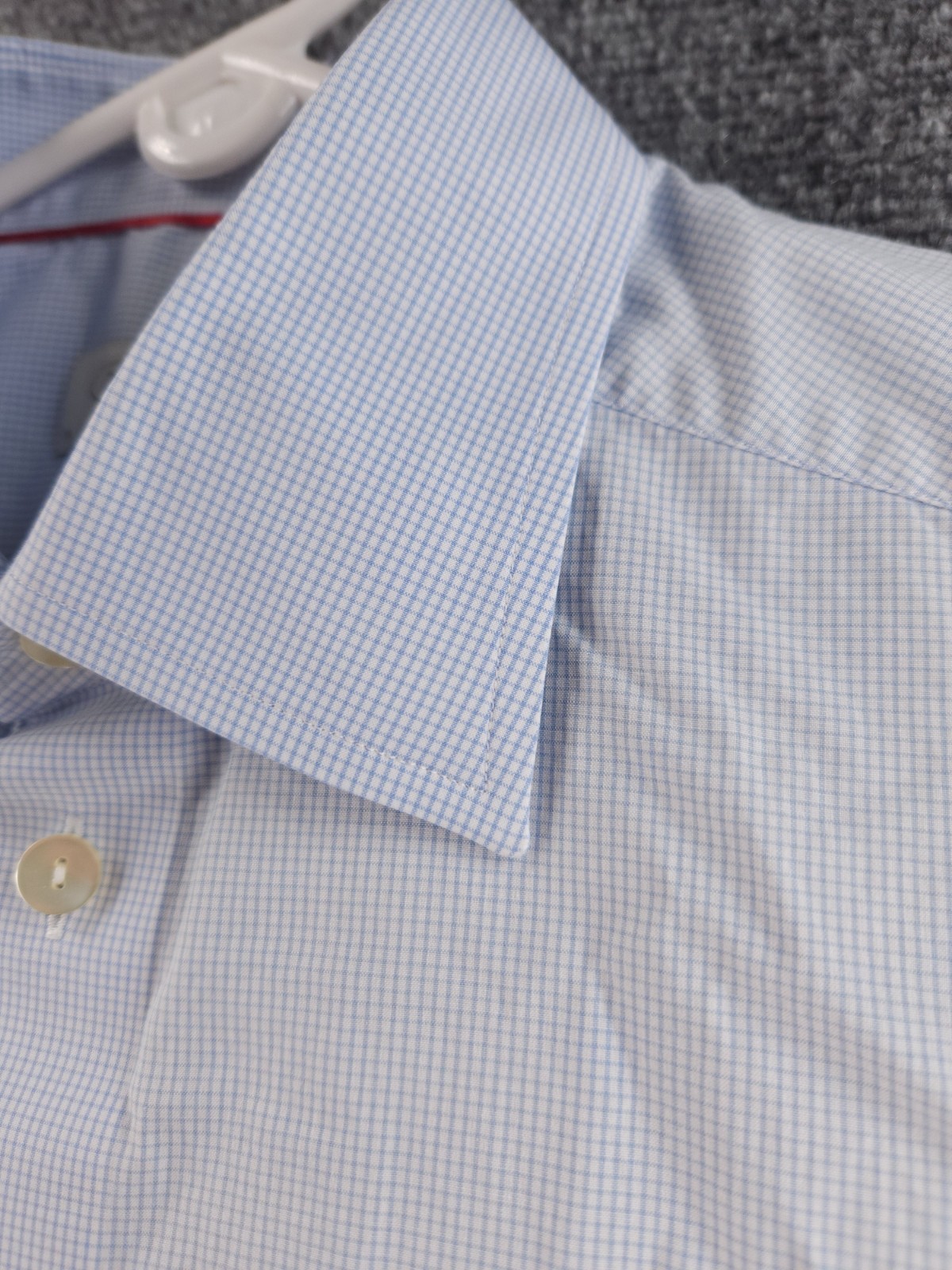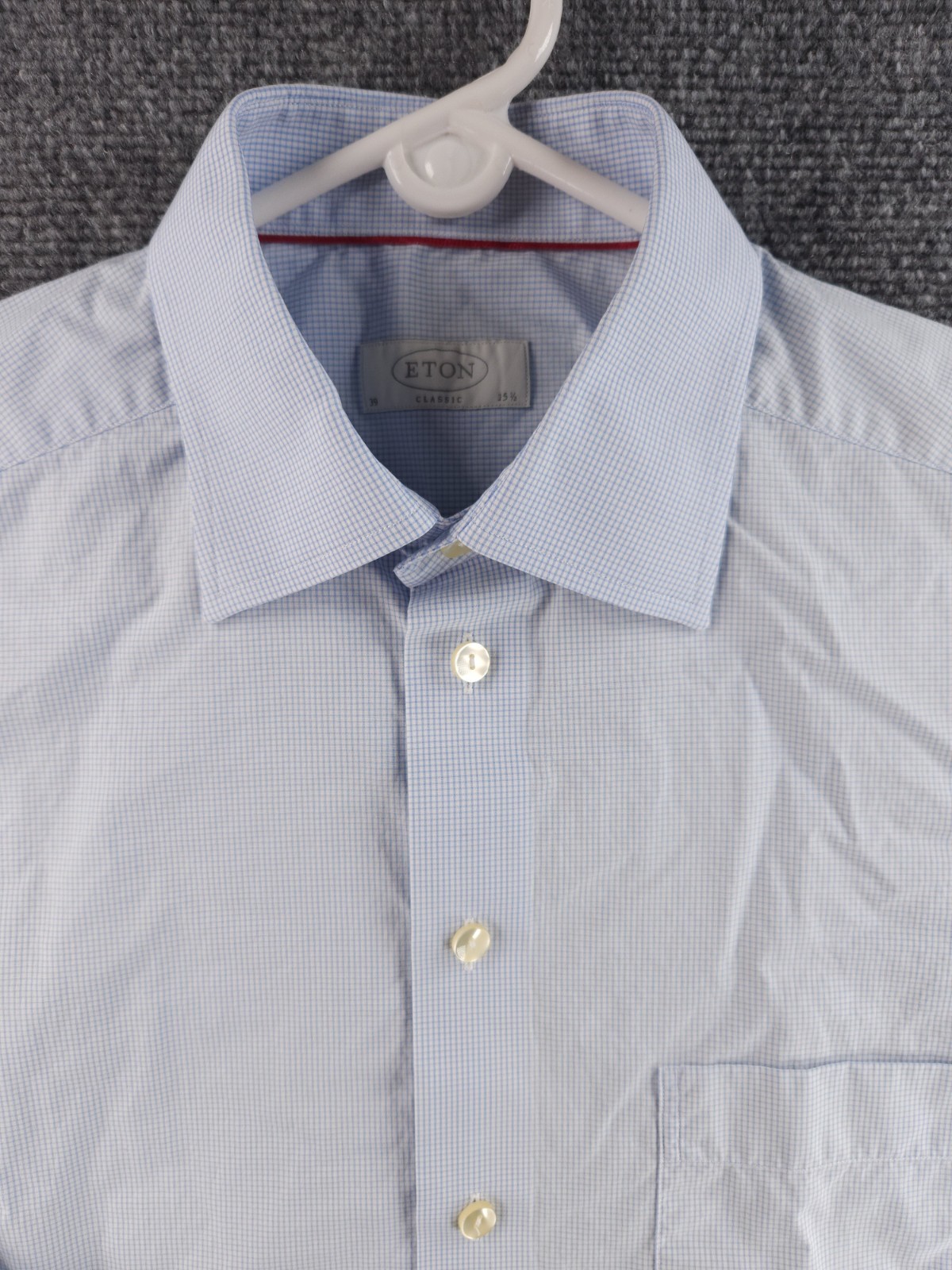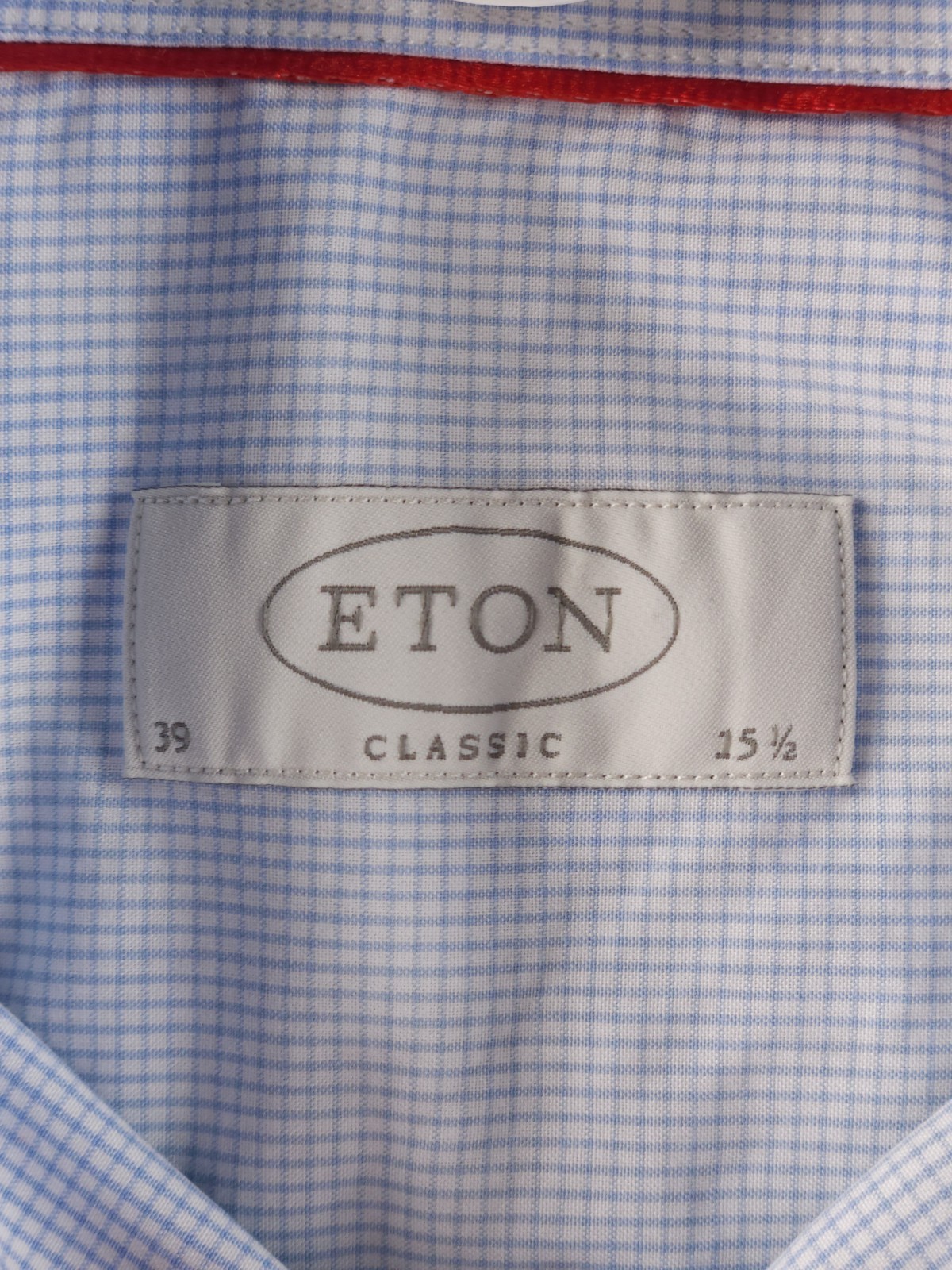 как выглядит Eton All Cotton 15.5 Check Classic Blue Premium Shirt Button Up Convertible Cuff фото