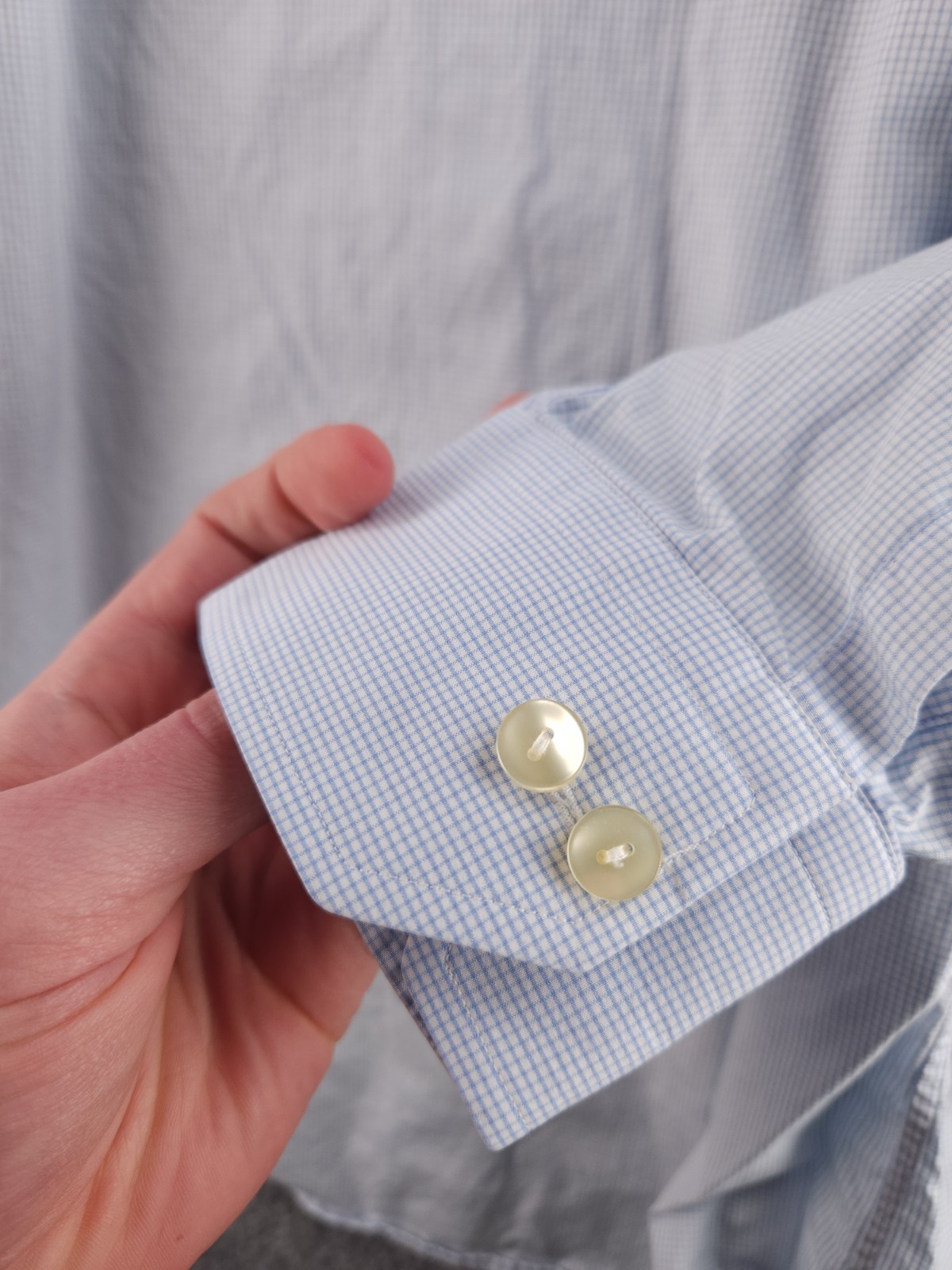 Eton All Cotton 15.5 Check Classic Blue Premium Shirt Button Up Convertible Cuff