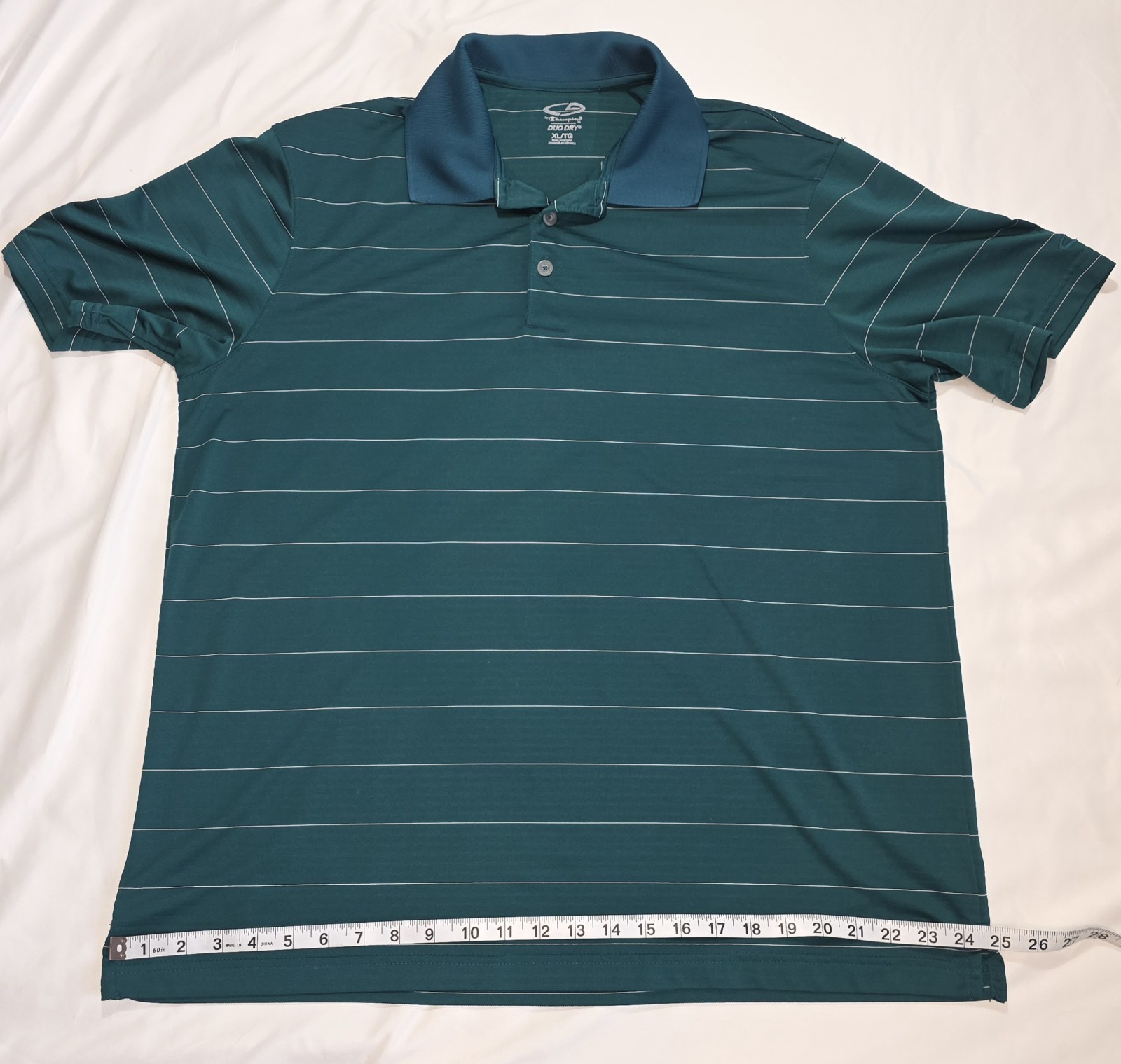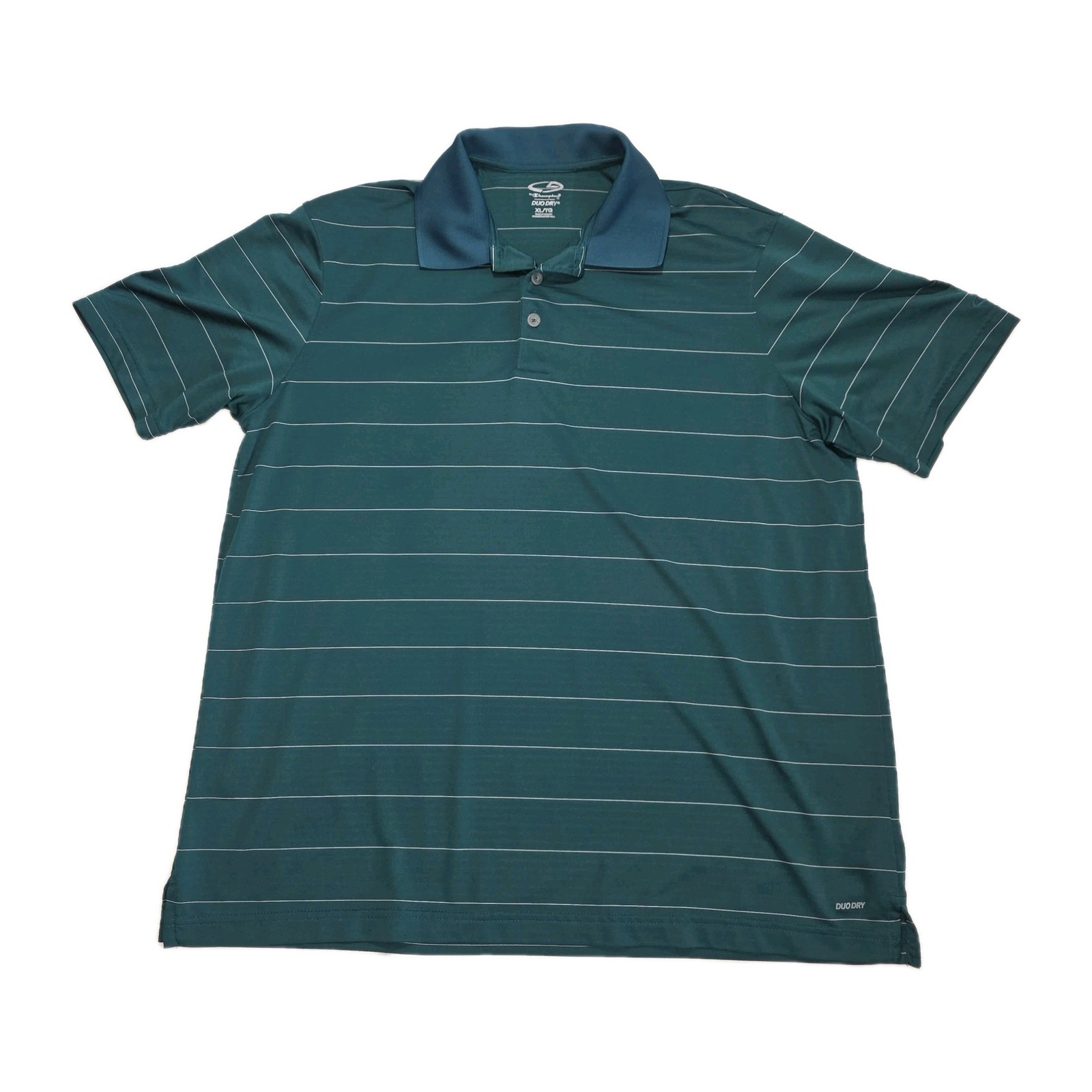 Champion DUO DRY Breathable Lightweight Striped Polo Men's Shirt XL Teal Green