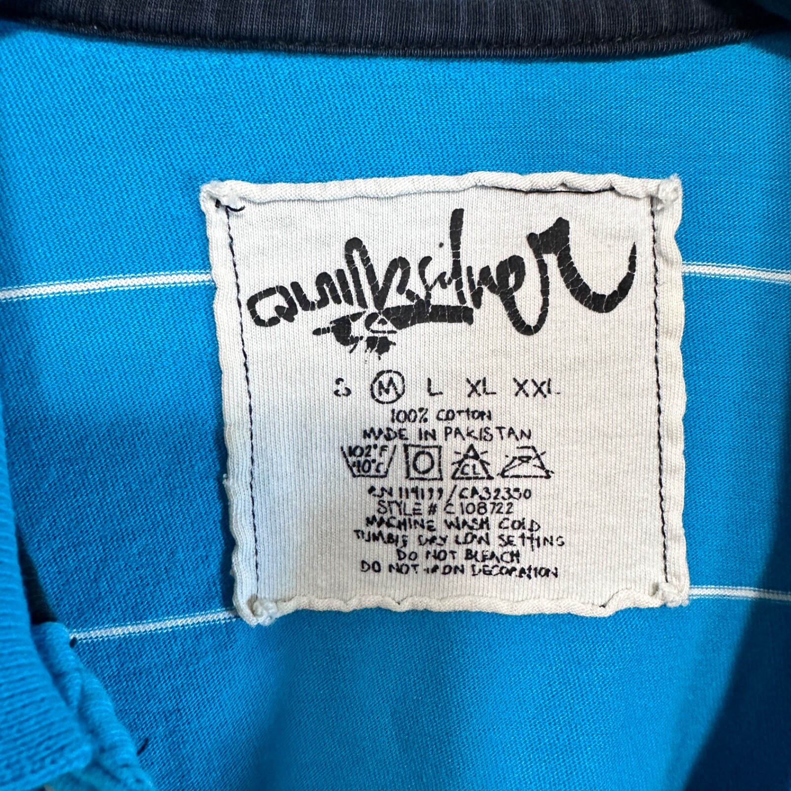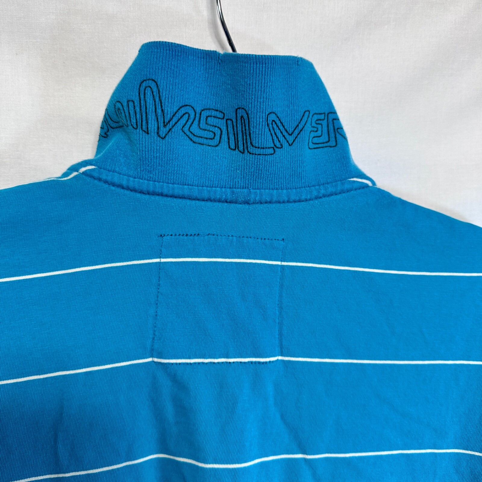как выглядит Quiksilver Stripe Polo Shirt Size M Reverse Stitching Distressed Logo Printed фото