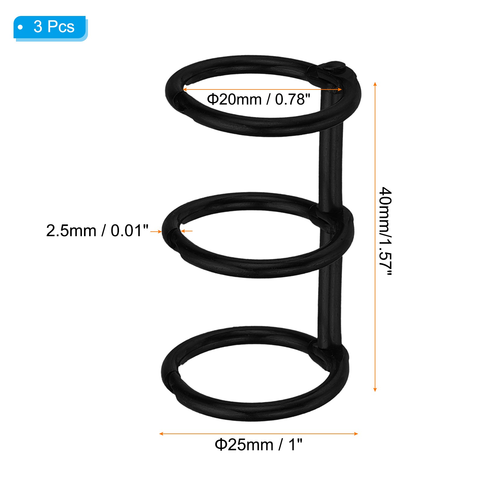 3 Rings Metal Loose Leaf Binding with 25 mm ID Book Binding, Black, 3 Pcs