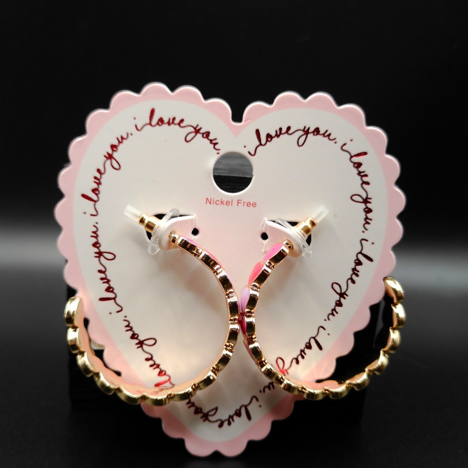 Gold Tone Enamel Heart Hoop Earrings Pink Red Lavender Nickel Free