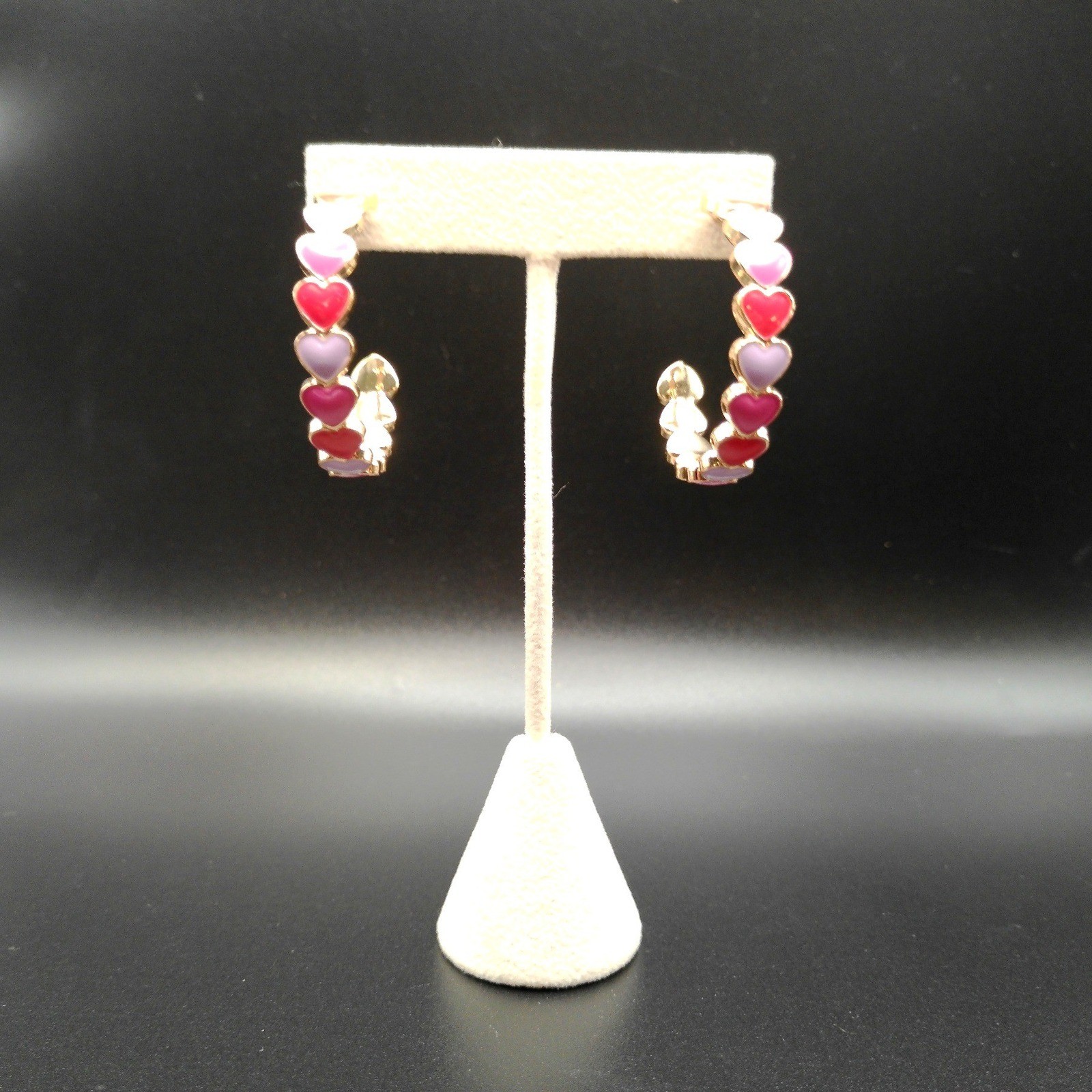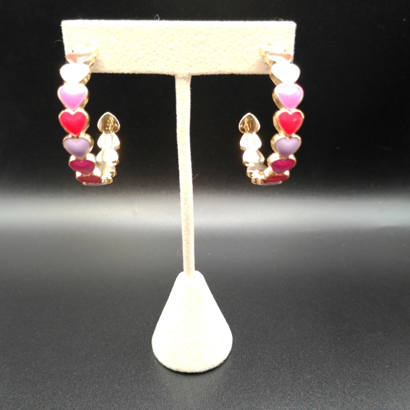 как выглядит Gold Tone Enamel Heart Hoop Earrings Pink Red Lavender Nickel Free фото