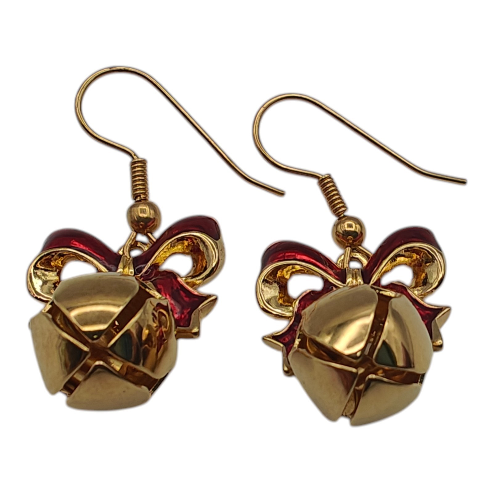 Christmas Jewelry Earrings GoldTone Jingle Bell Red Bows