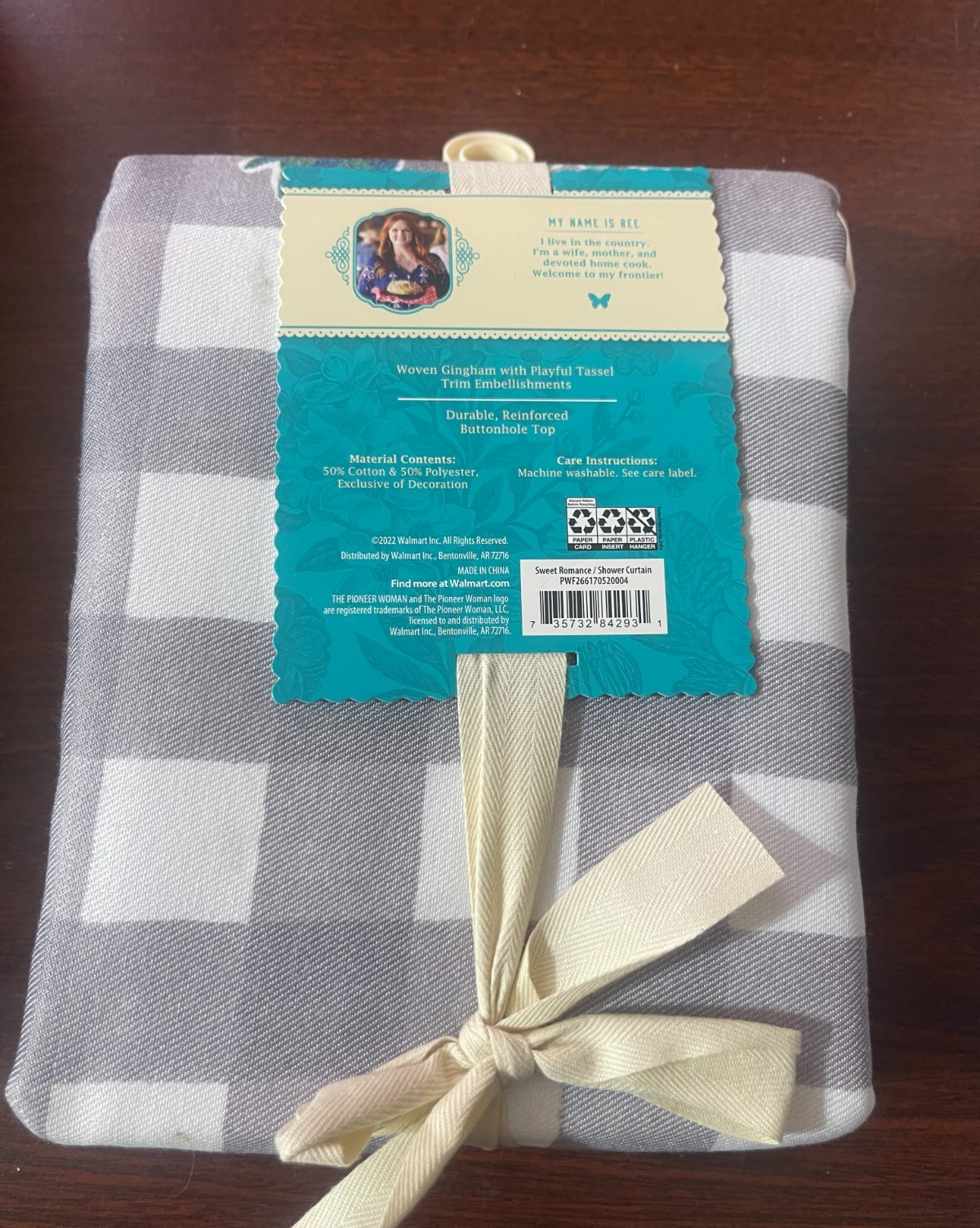 как выглядит Pioneer Woman Sweet Romance Gray Gingham Floral Fabric Shower Curtain 72" x 72" фото