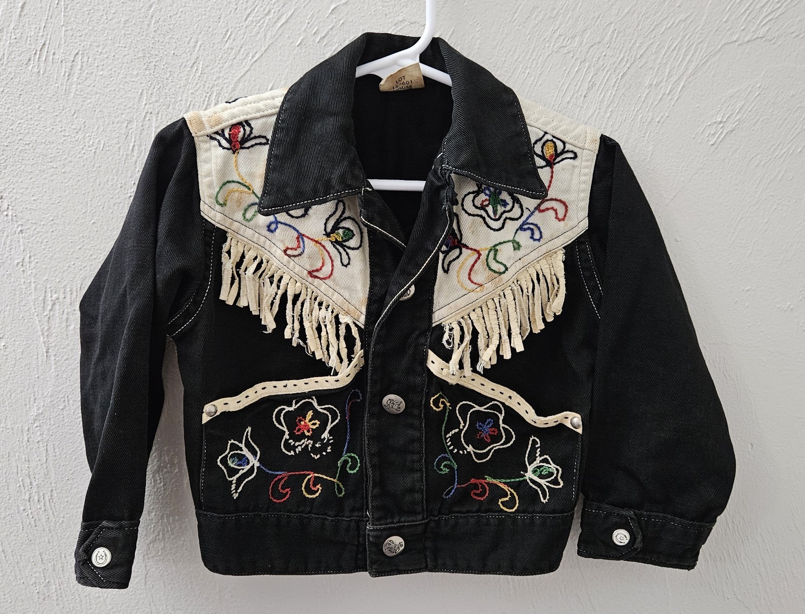 Vintage Rare Black Denim Western Jacket Kid Size 4 Embroidery Fringe PLEASE READ