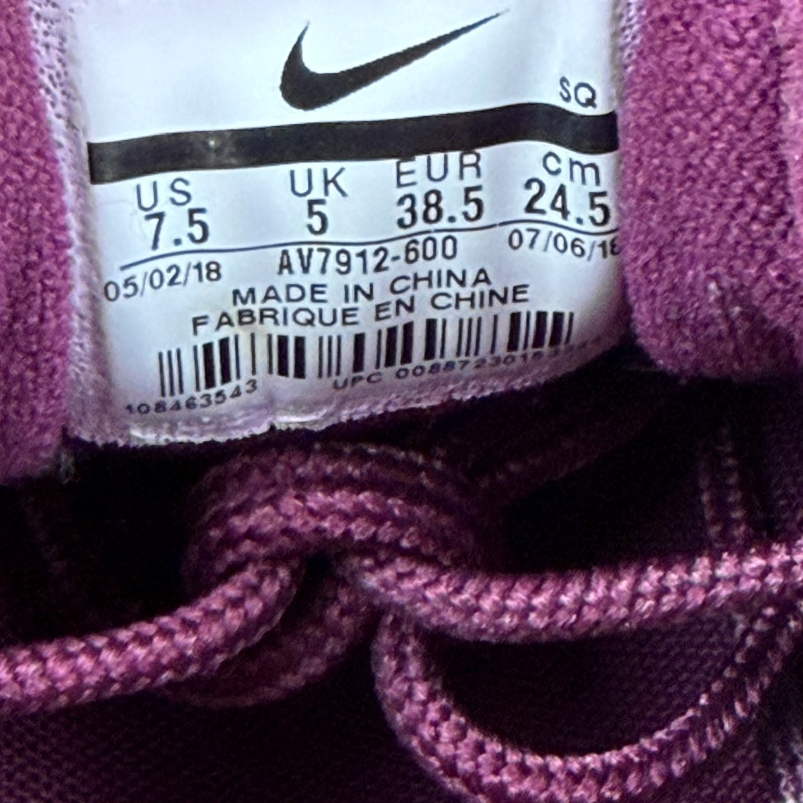 Nike Air Max Plus TN Bordeaux Womens 7.5 AV7912-600 Preowned