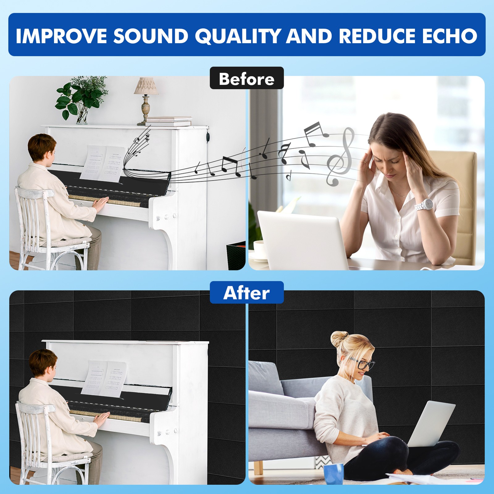 как выглядит 16 Pack Acoustic Panels Self-adhesive Studio Noise Soundproofing Wall Tiles фото