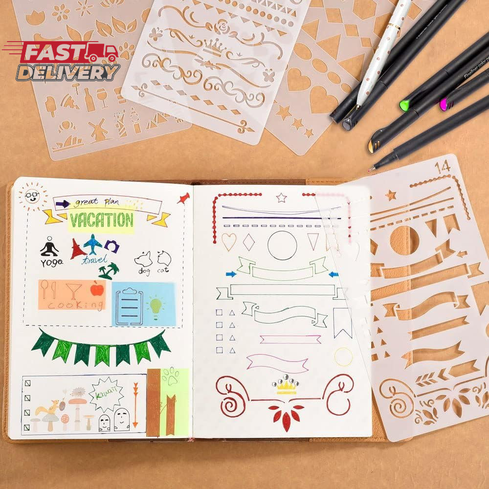 30 PCS Journal Stencils, Planner Stencils for Junk Journal Notebook Diary Scrapb