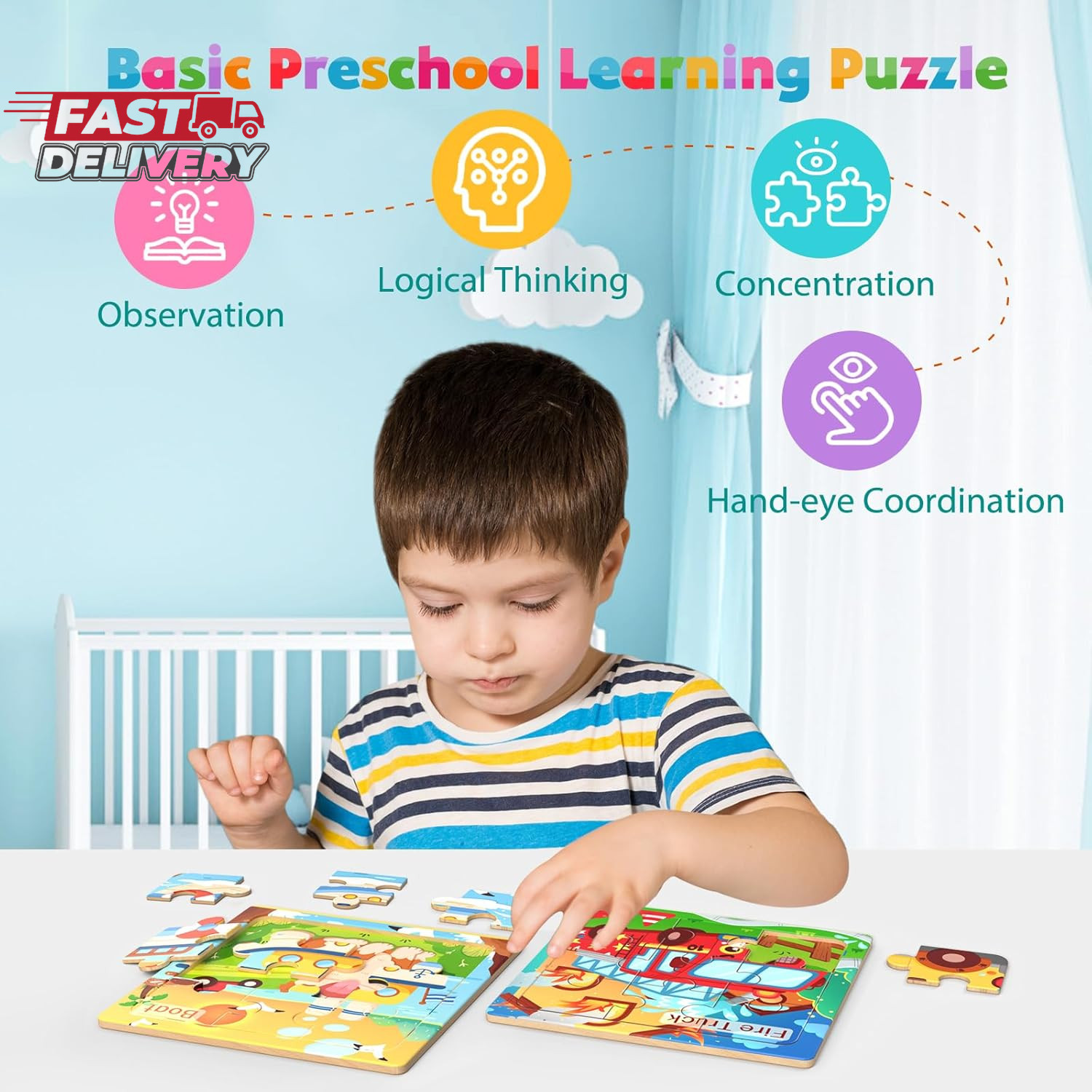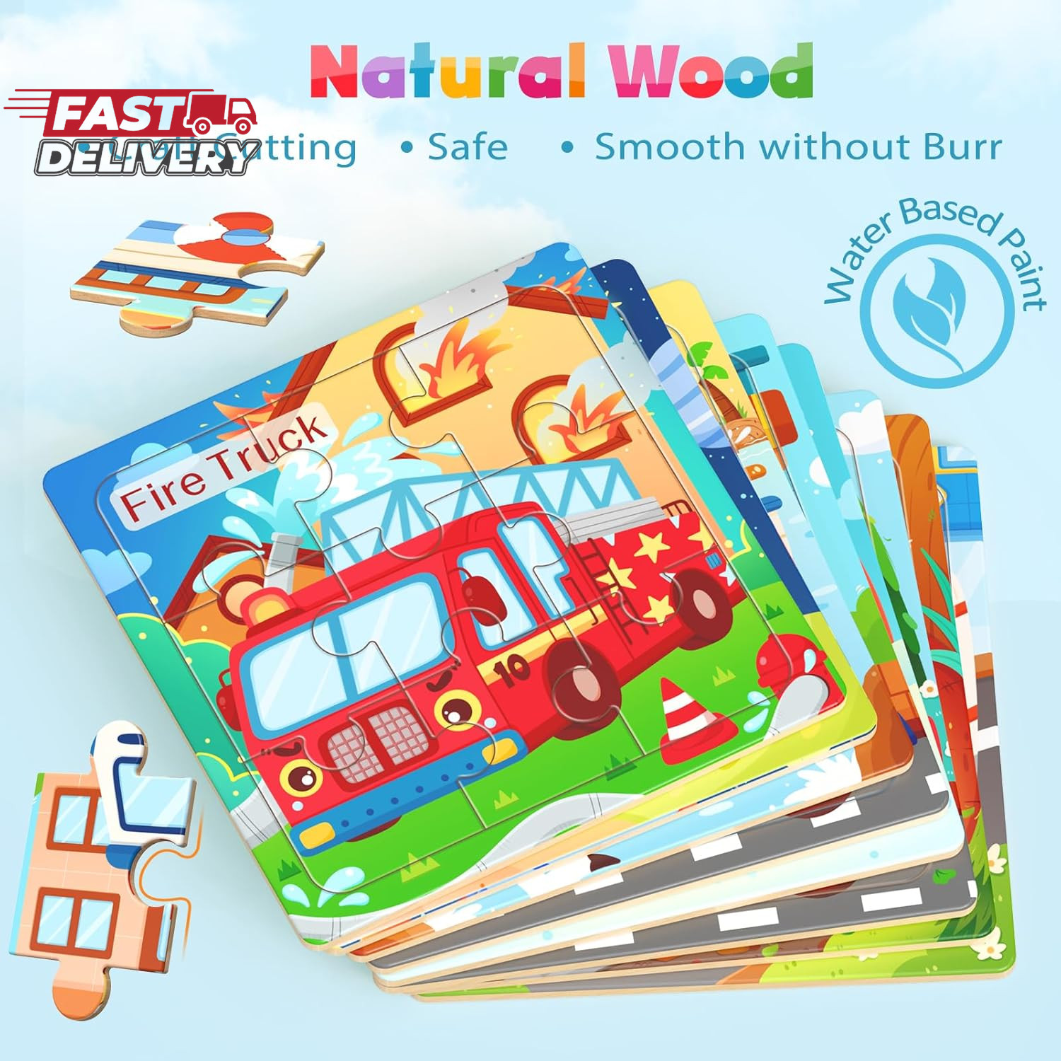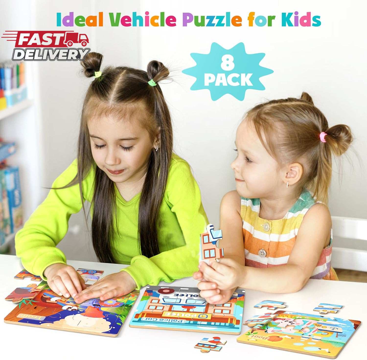 Wooden Puzzles for Toddlers, 8 Pack Vehicle Jigsaw Puzzles for Kids3-5, 9 Pieces