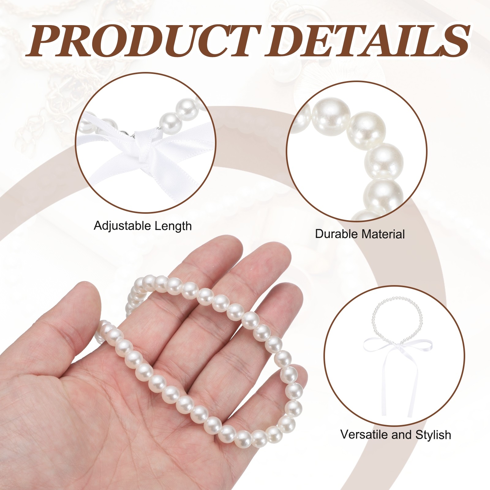 Boho Pearl Necklace for Women with White Ribbon Bow, Chokers Necklace