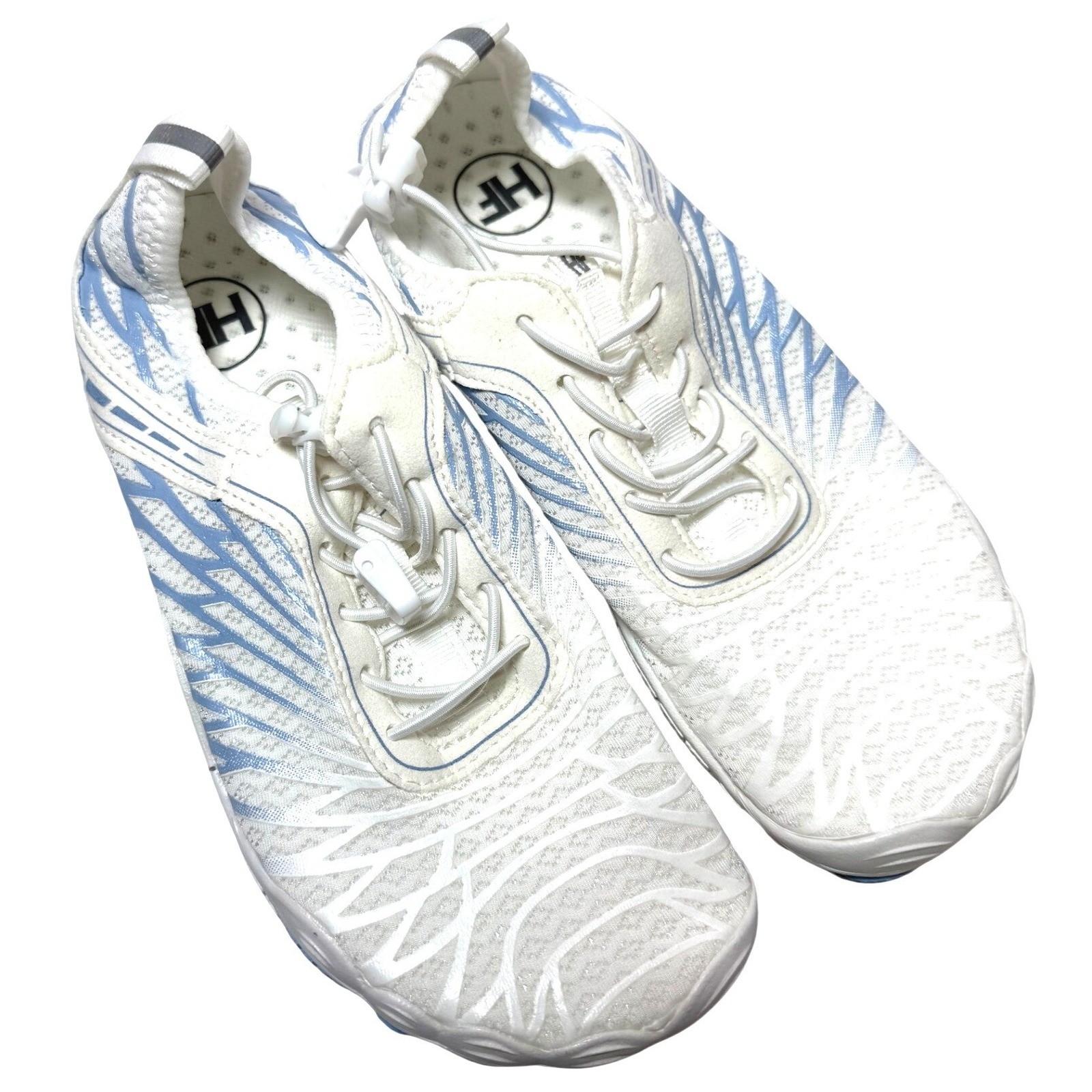 HF Barefoot Minimalist White Blue Water Shoes Women Size 36 Trail Gym Sneakers