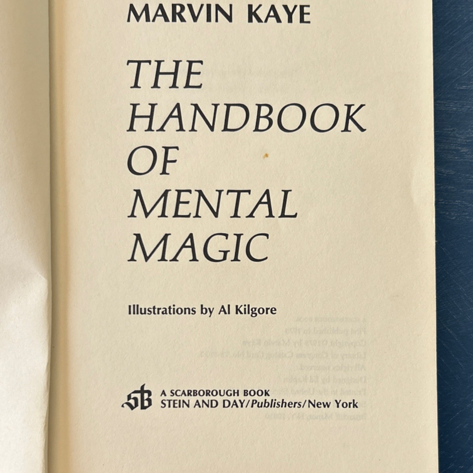 The Handbook of Mental Magic by Marvin Kaye Paperback Magic Genre Book