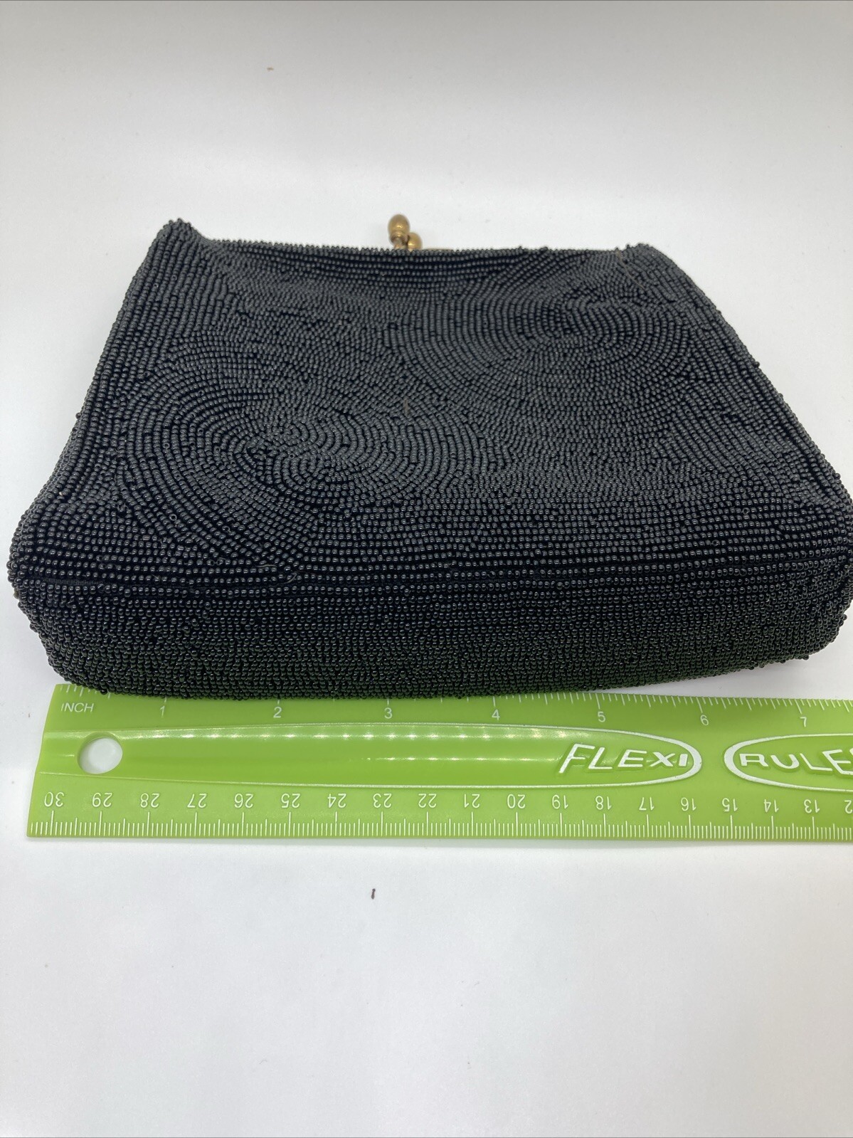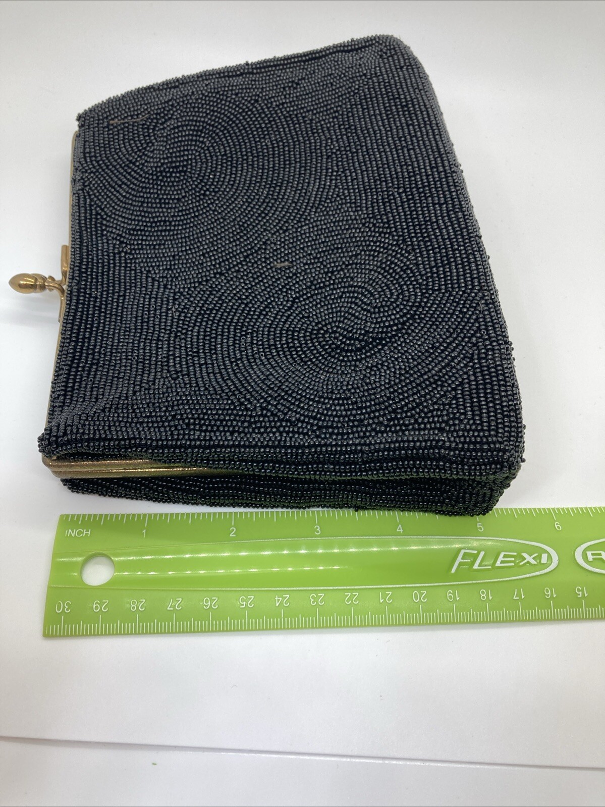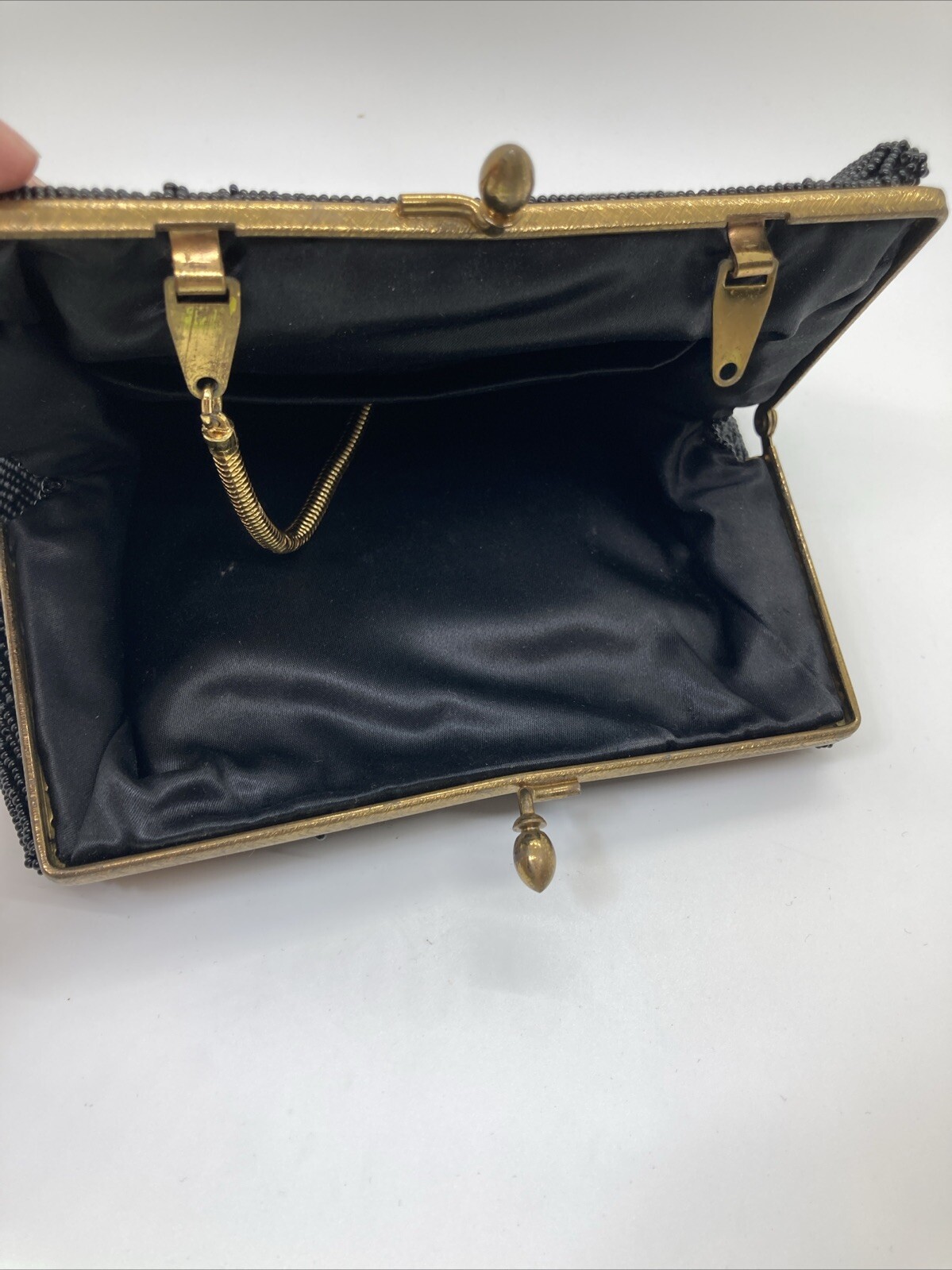 как выглядит Vintage Neiman Marcus Black All Beaded Small Clutch Change Purse Chain Strap фото