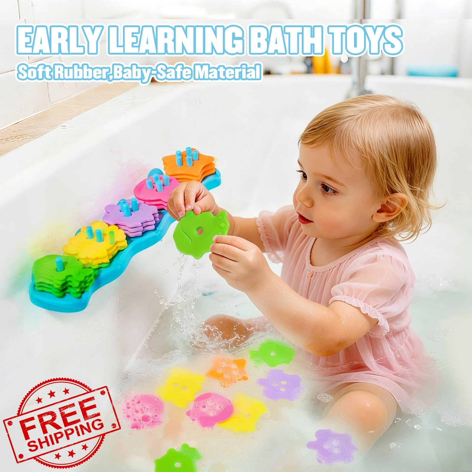 Bath Toys 1-3yr Mold Free 20pc Shape Sorting Stacking Floating Toddler Baby Tub
