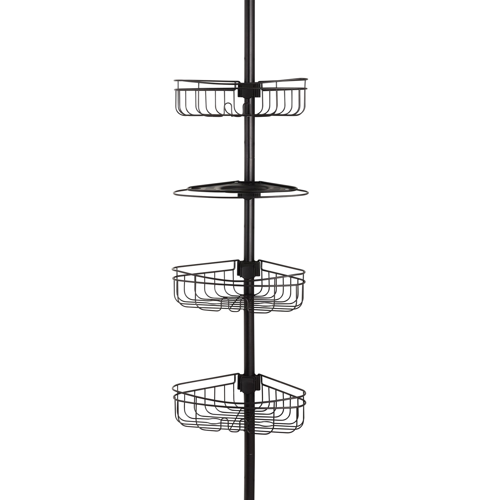 4 Tier Steel Tension Pole Shower Caddy with 3 Baskets Soap Tray Shelf New