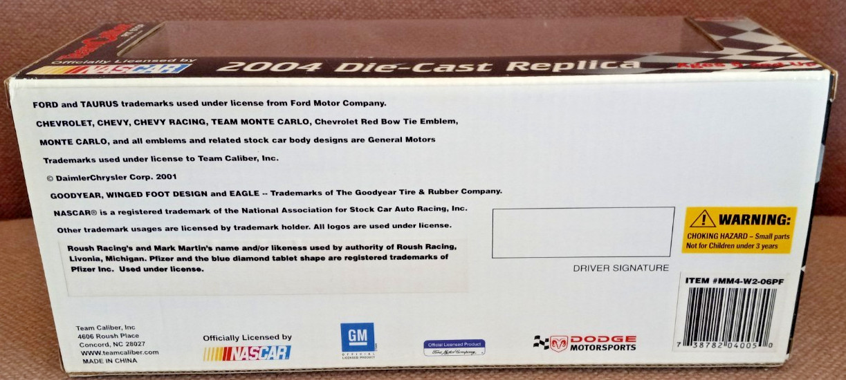 Mark Martin 6 pfizer 2004 Team Caliber Pit Stop 1:24 scale NASCAR Diecast NOS