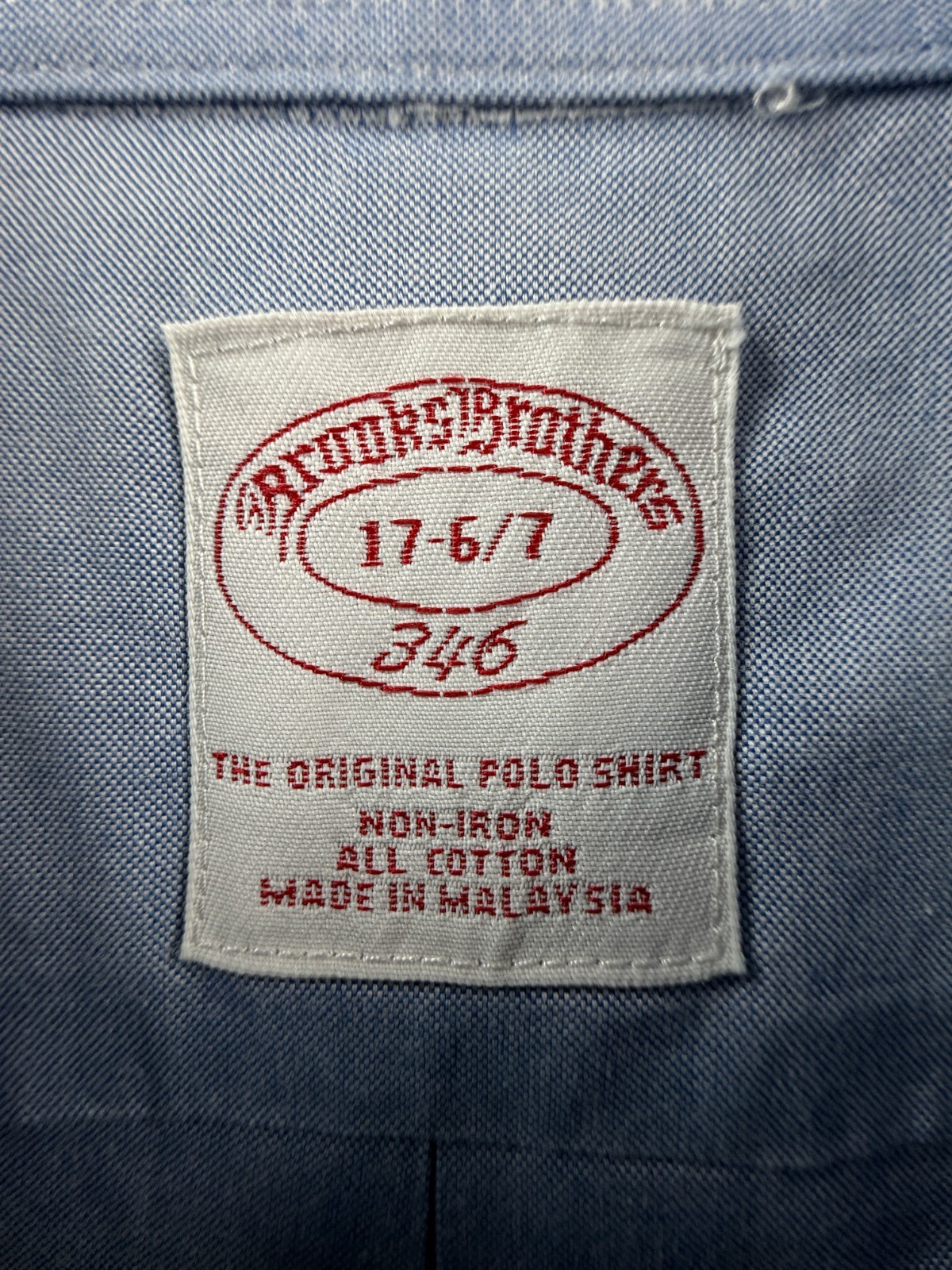Brooks Brothers Button-Down Non-Iron 17 6/7 All Cotton Blue Preppy Mens Pocket
