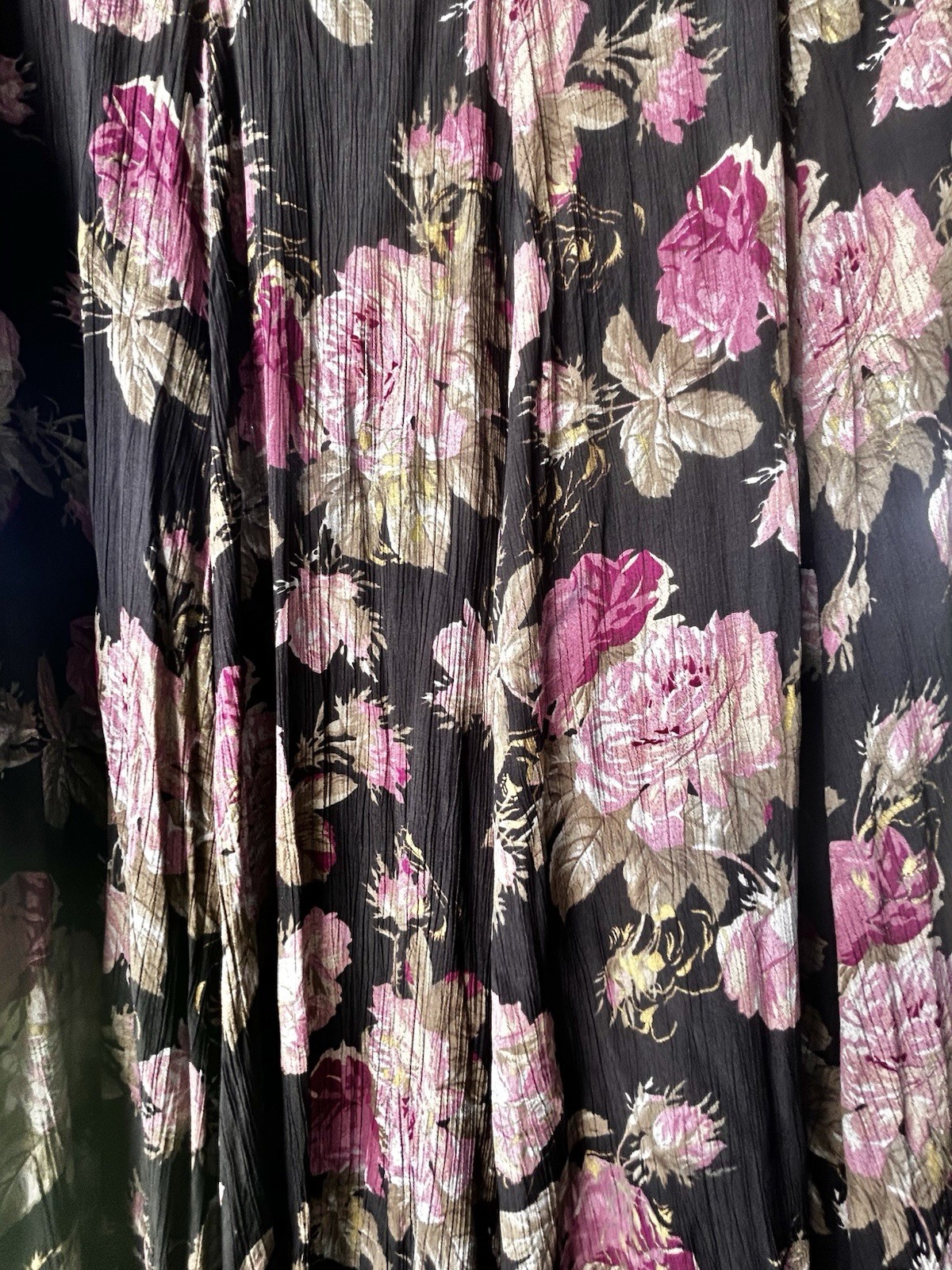 как выглядит VTG Carole Little Boho Midi Full Skirt Womens 12 Pink Mauve Roses Black Rayon фото