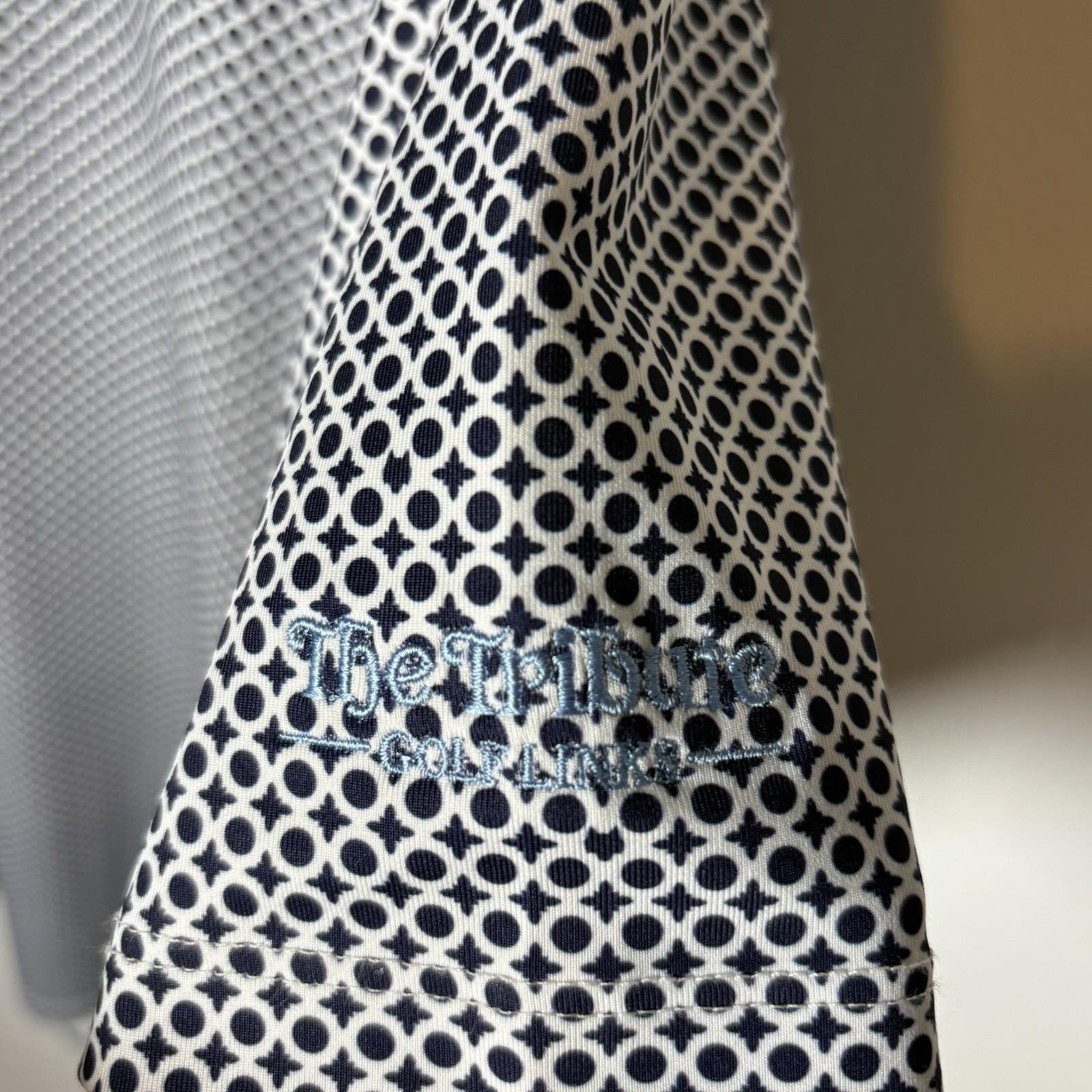 как выглядит Greyson x The Tribute Golf Polo Shirt Men s L AOP Geo Performance Stretch Wolf фото