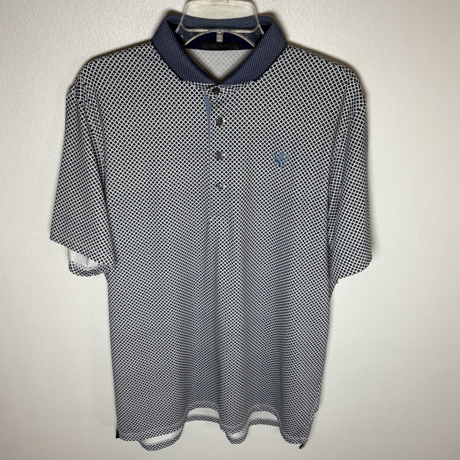 Greyson x The Tribute Golf Polo Shirt Men s L AOP Geo Performance Stretch Wolf