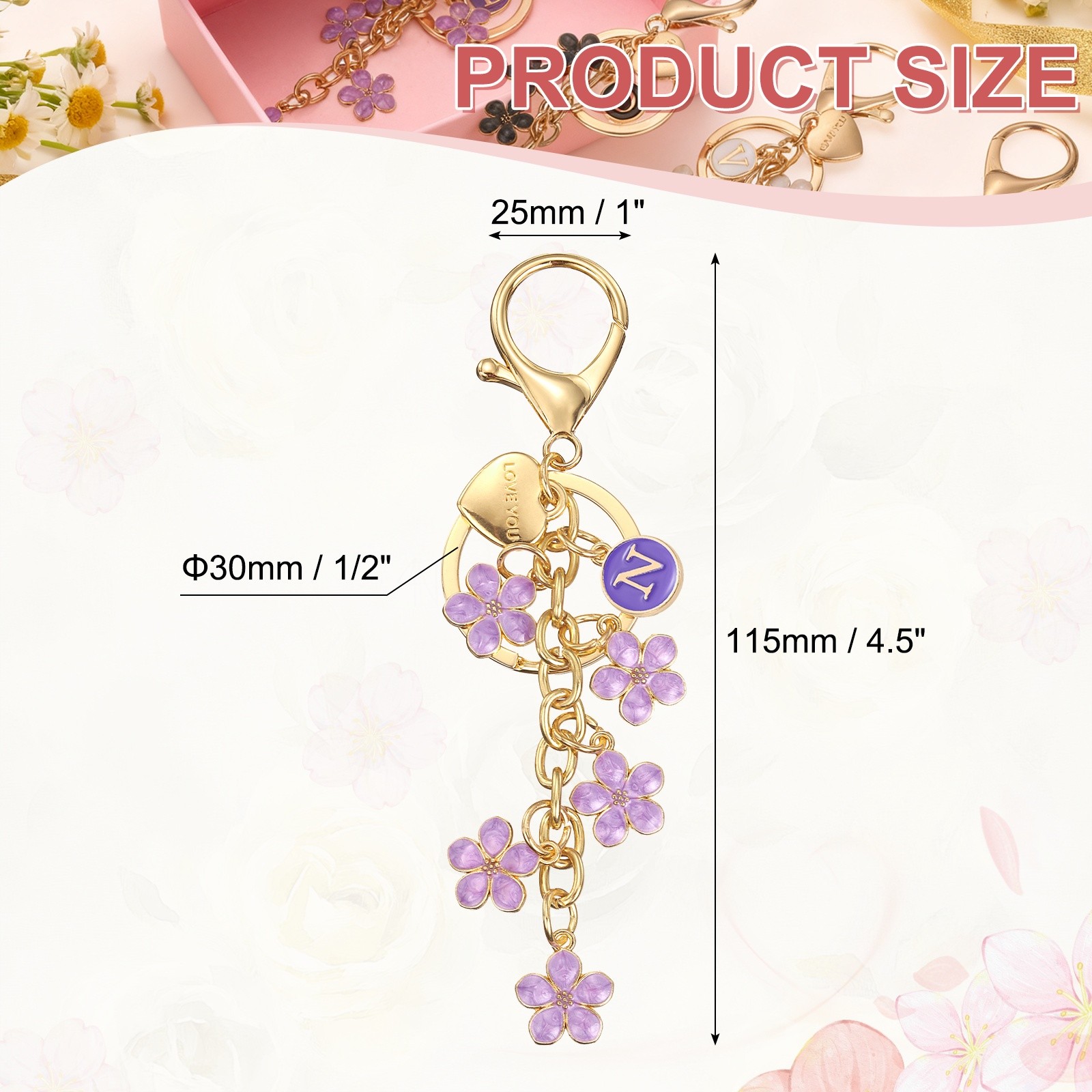 как выглядит Initial Letter Keychain, Cute Flower Letter-N Keychains for Women Girls Purple фото