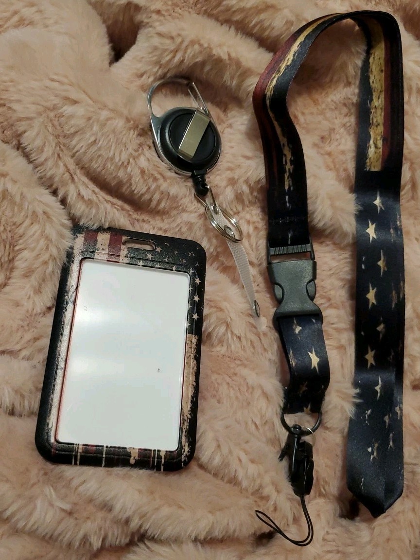 USA FLAG LANYARD ID CARD HOLDER American stars stripes key ring neck strap