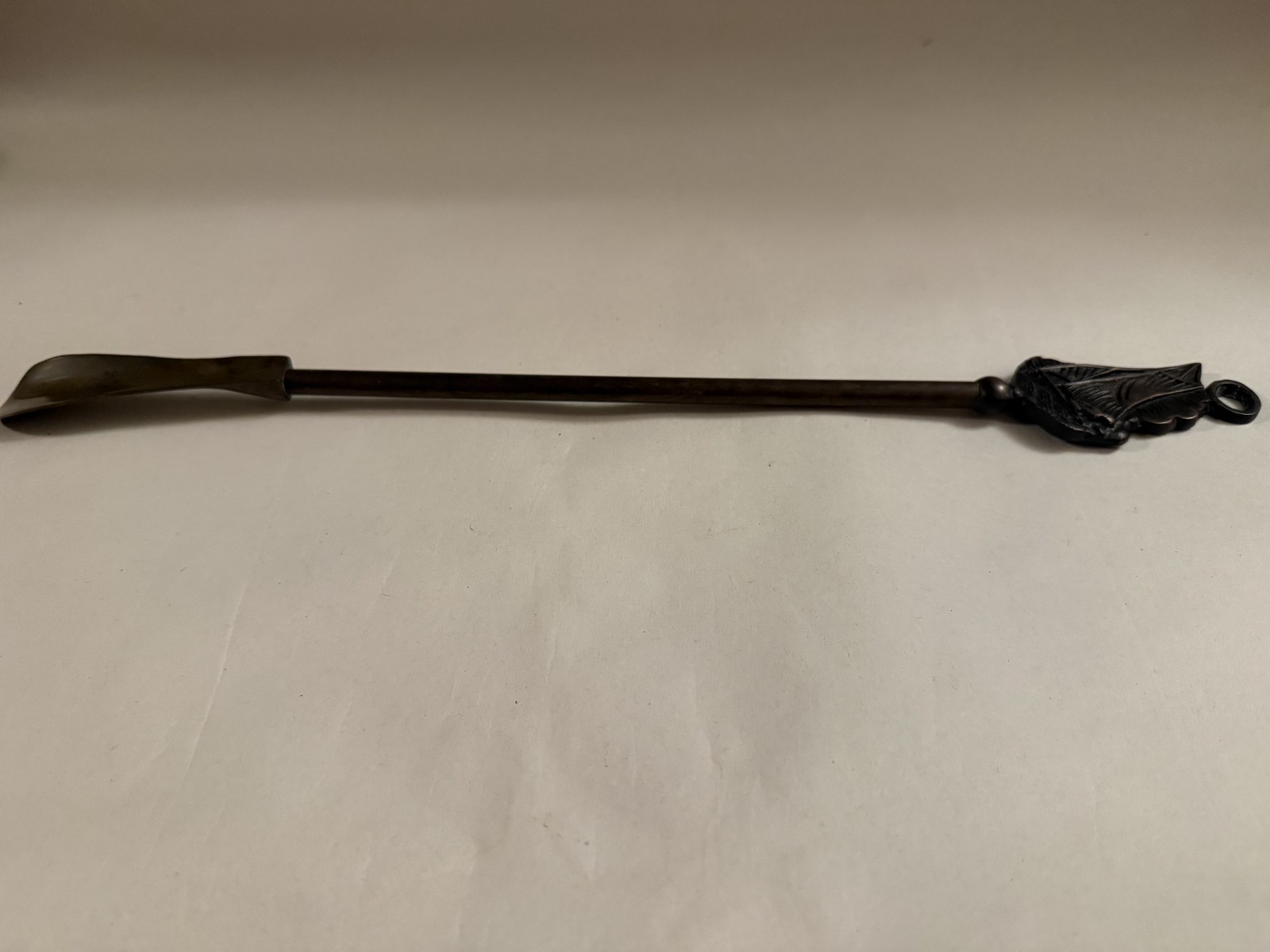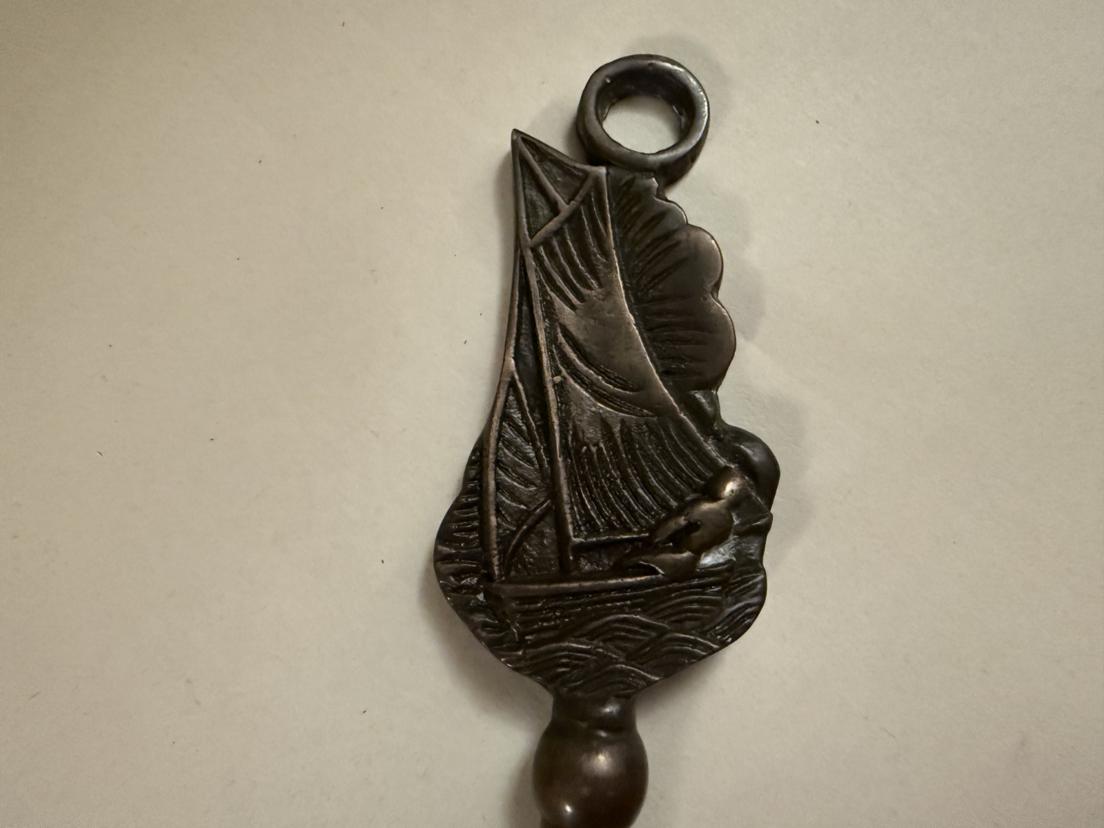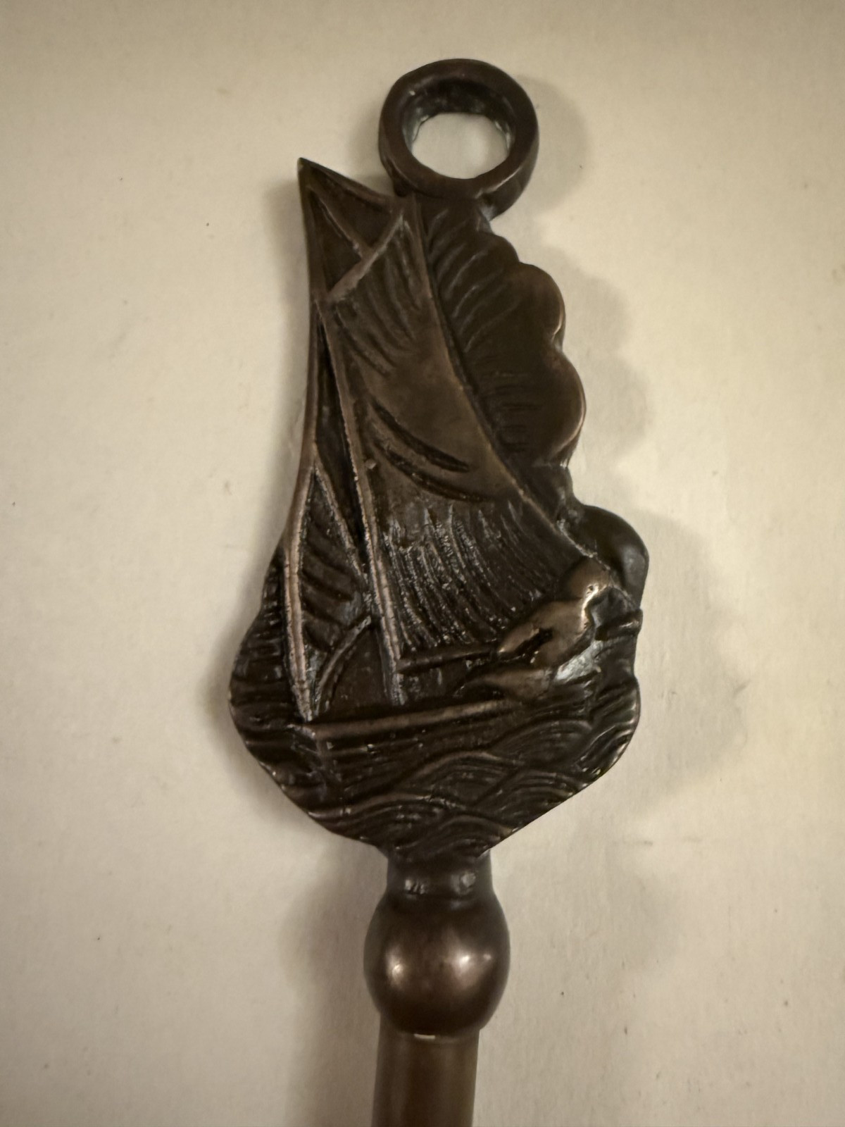как выглядит Vintage Solid BRASS Shoe Horn w/ Sailboat Design - MCM Great Patina 17" long фото