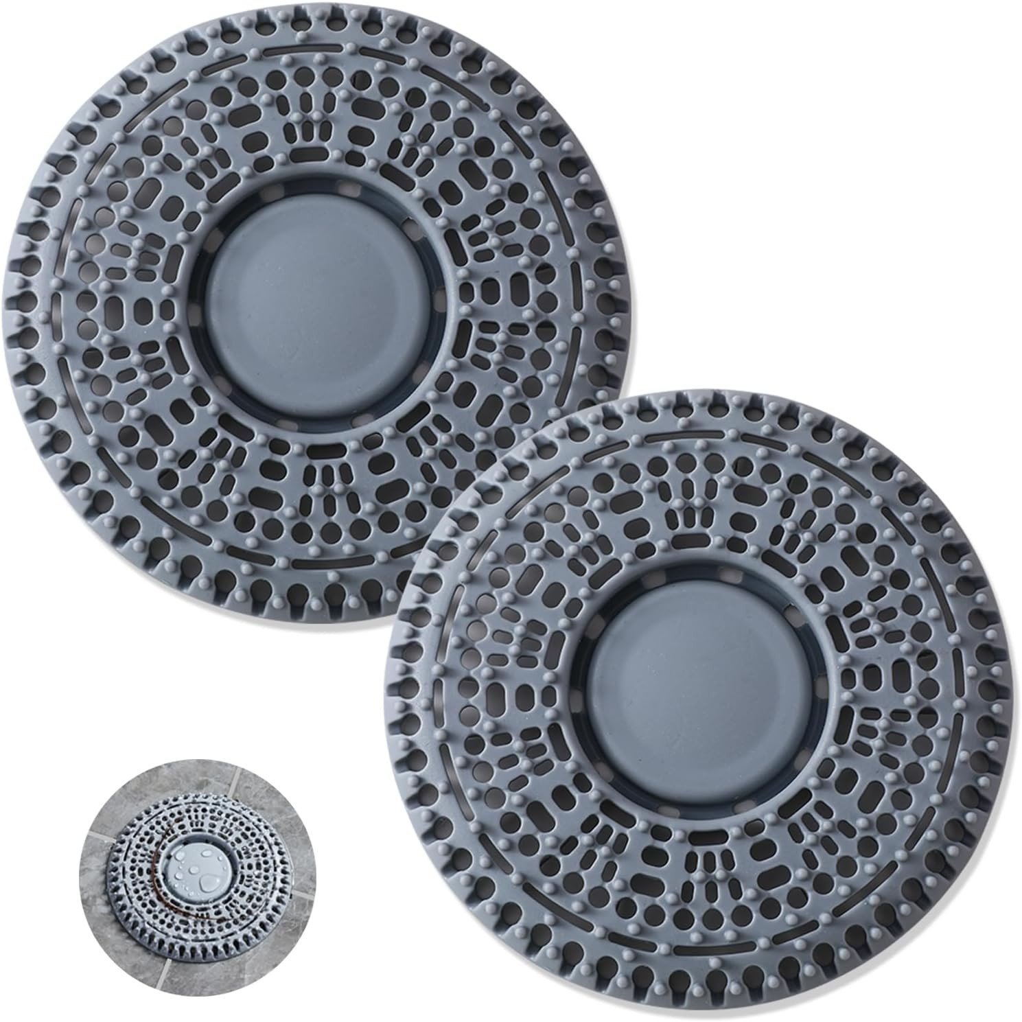 2 Pack Silicone Shower Drain Hair Catcher - Gray, 5.5 Inch Protector