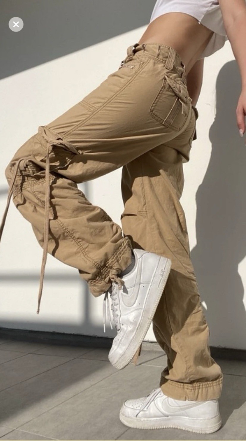 как выглядит Abercrombie Fitch Vintage Y2K Baggy Cargo Paratrooper Pants Dark Khaki Size 8 фото