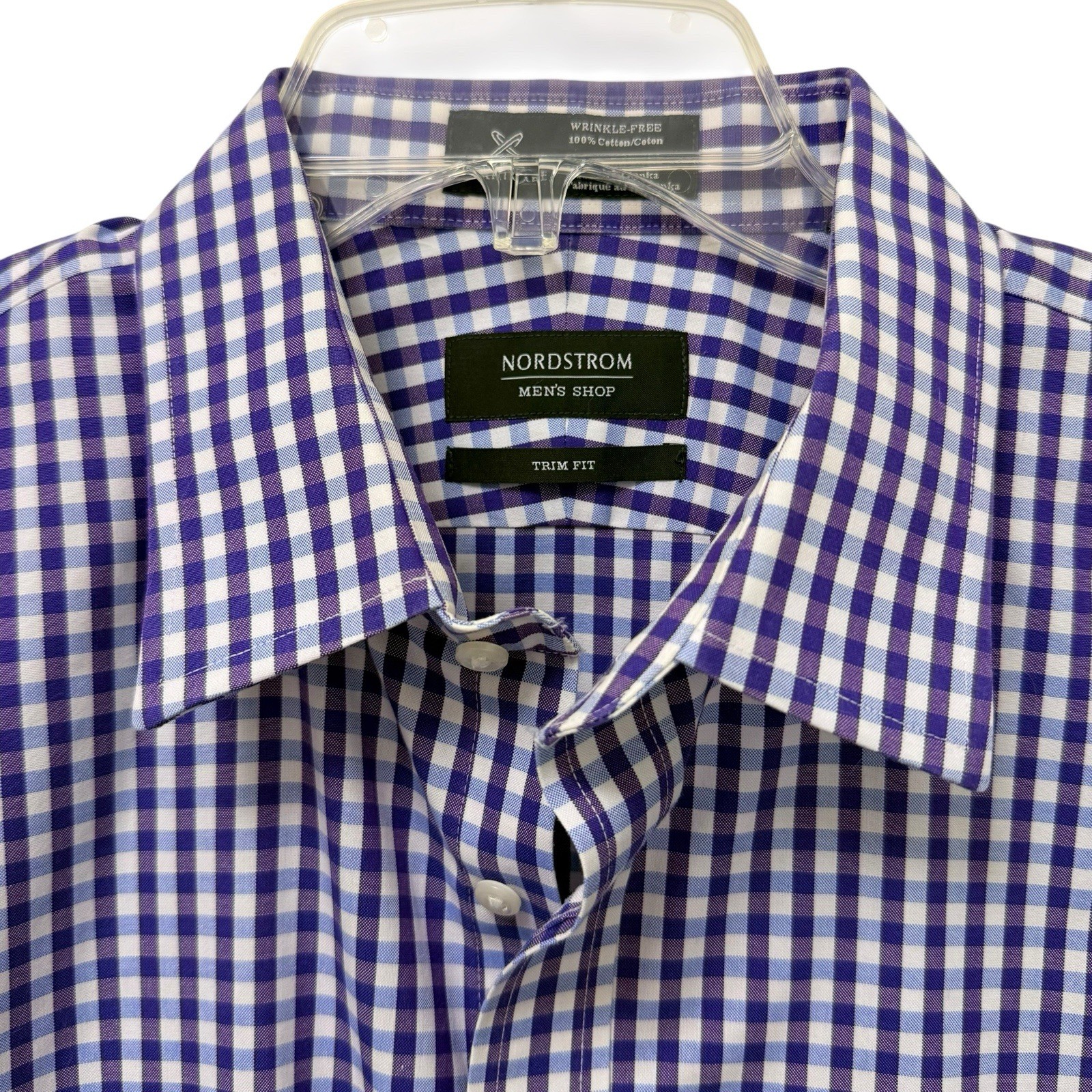 Nordstrom Mens Shop Trim Fit Dress Shirt 16.5 32/33 Size Large Blue Purple Check