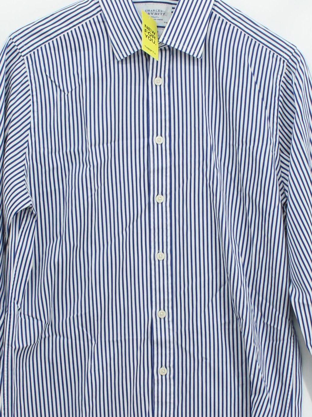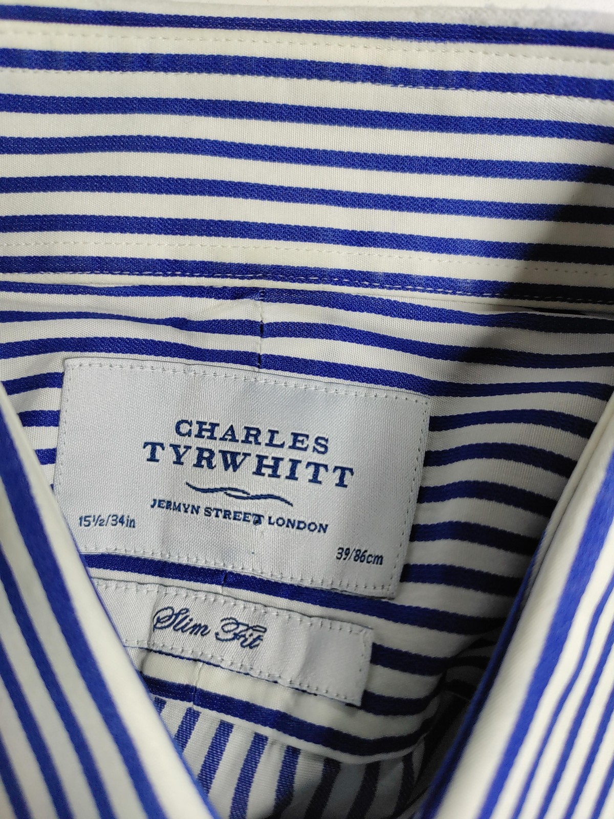 Charles Tyrwhitt Men's Shirt Collar: 15.5 in Blue Striped 100 Other Basic