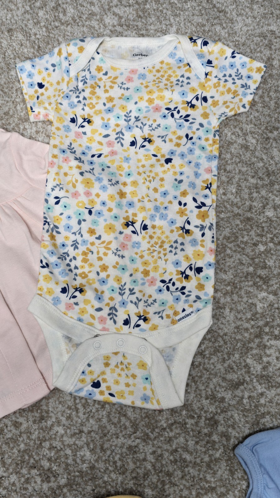 как выглядит Baby Girl Spring 6 Month One Piece Short Sleeve Bodysuits Lot Of 4 With Jacket фото
