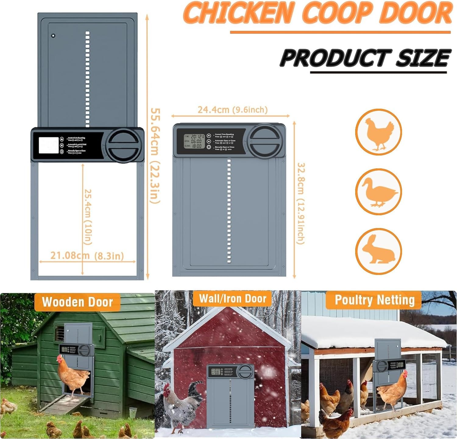 Chicken Coop Door Automatic Waterproof With Light Sensor Poultry Gate orange