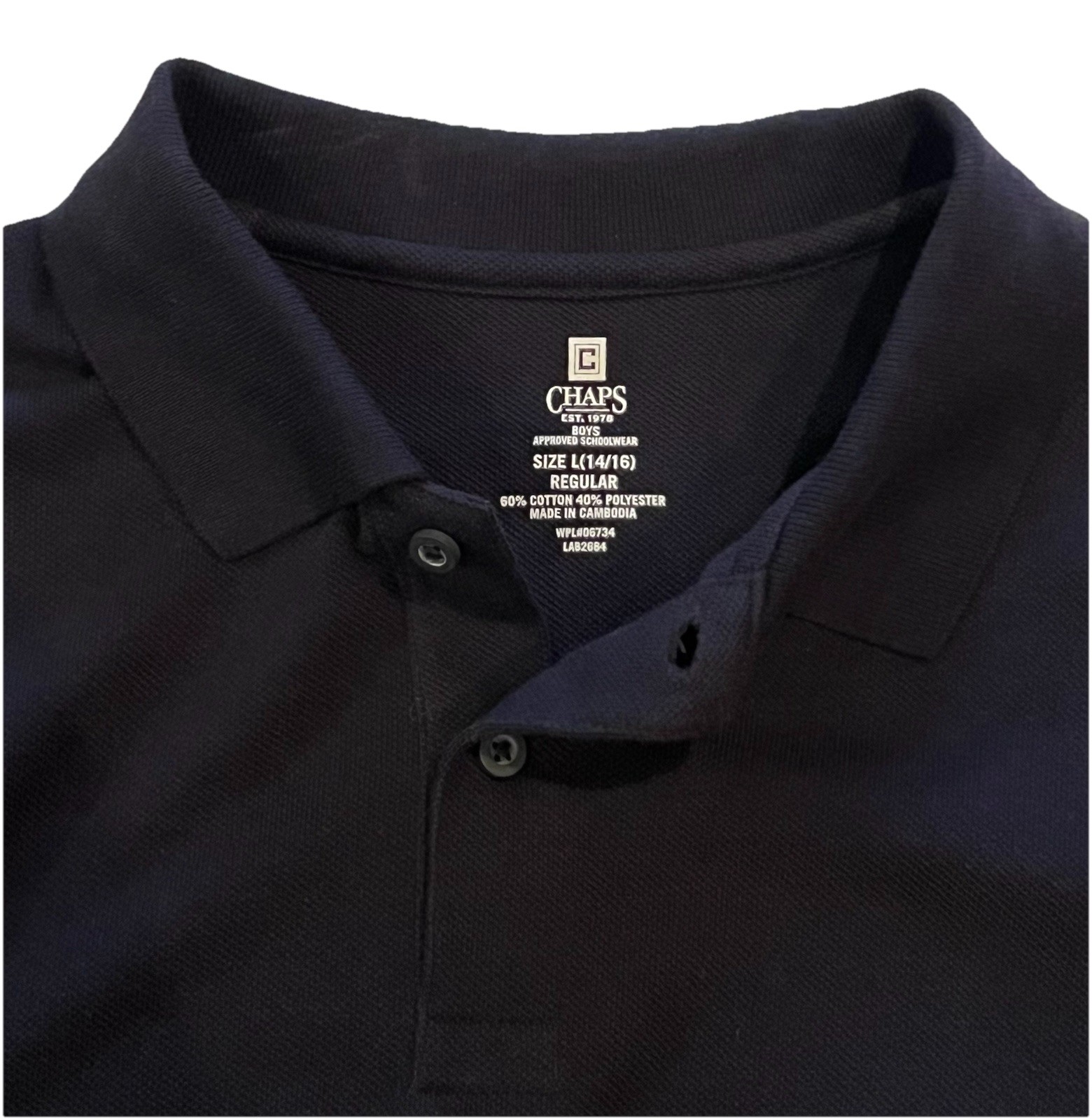 Chaps Navy Blue Soft School Approved Uniform Polo Golf Shirt Boy s Large 14/16