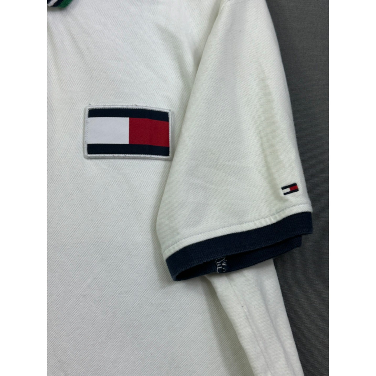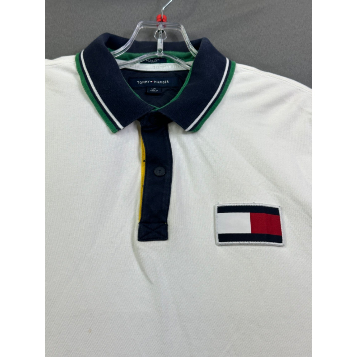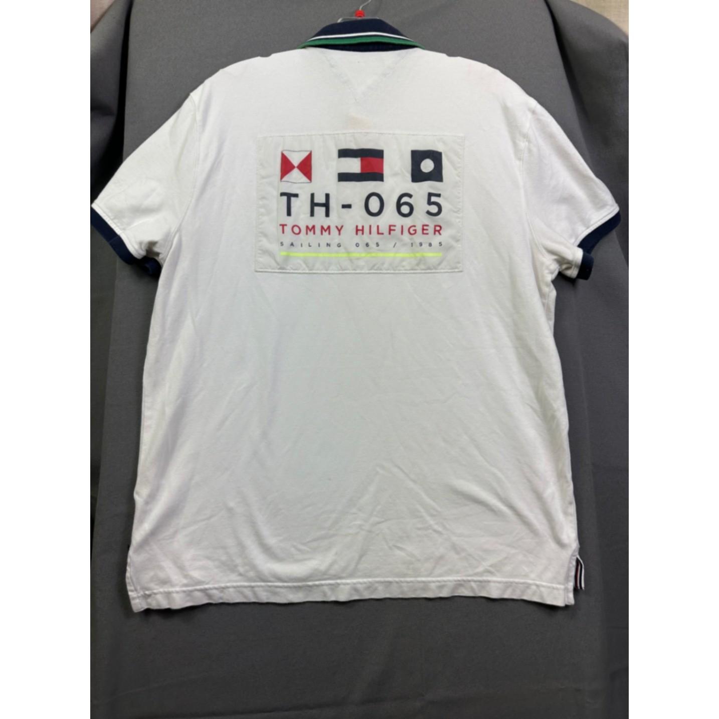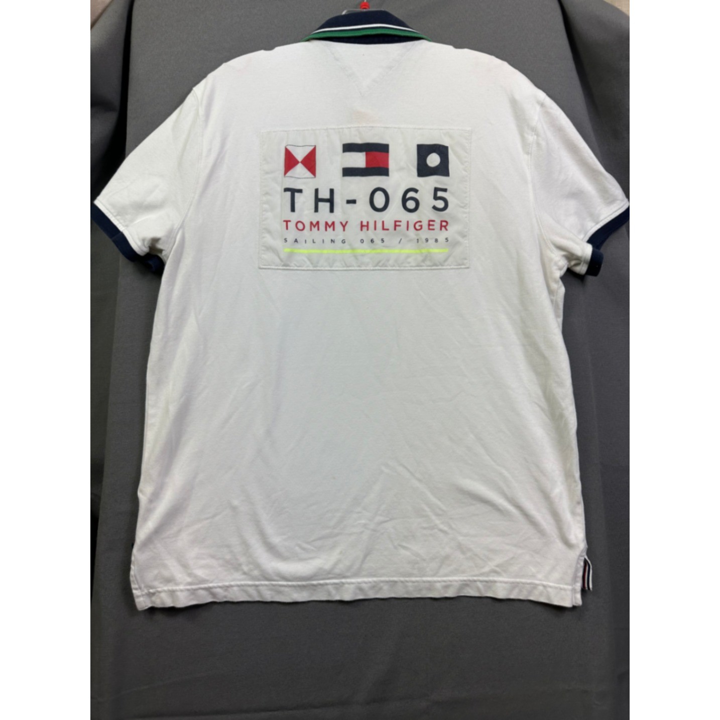 Tommy Hilfiger Men White Sailing TH-065 Flag Pique Polo Shirt Large Stretch L/G