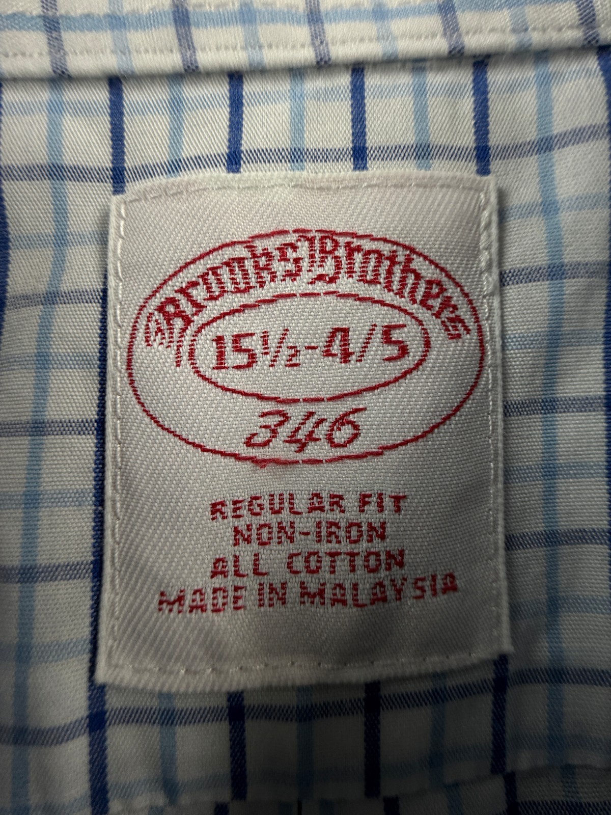 Brooks Brothers Non-Iron Check 15.5 4/5 All Cotton Blue Business Pocket Shirt