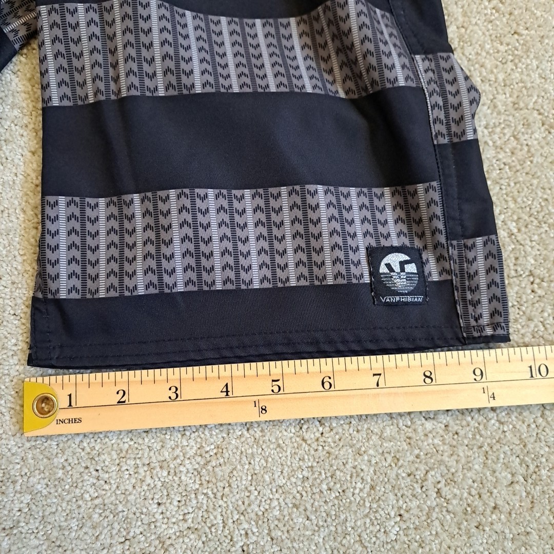 Vans Vanphibian Men's Board Shorts 28 Black Gray Striped Swim Trunks Hybrid 12