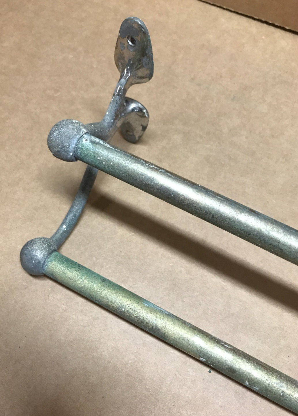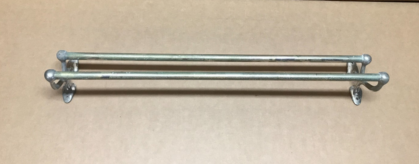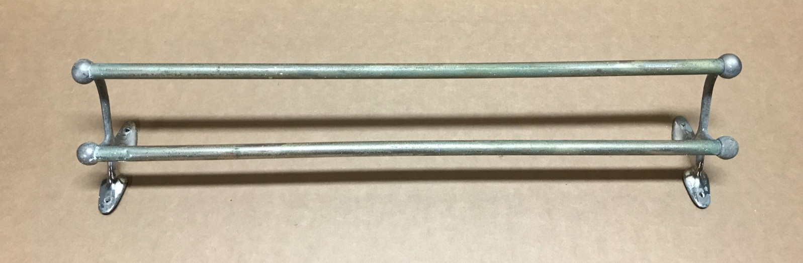 Antique 21 Nickel Brass Double Towel Bar Rack Old VTG Kitchen Bathroom 551-26B