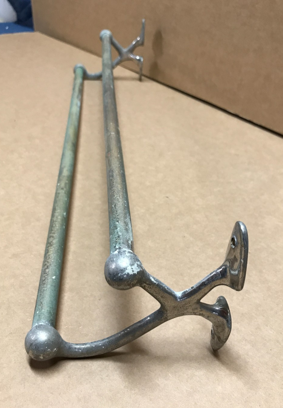 как выглядит Antique 21" Nickel Brass Double Towel Bar Rack Old VTG Kitchen Bathroom 551-26B фото