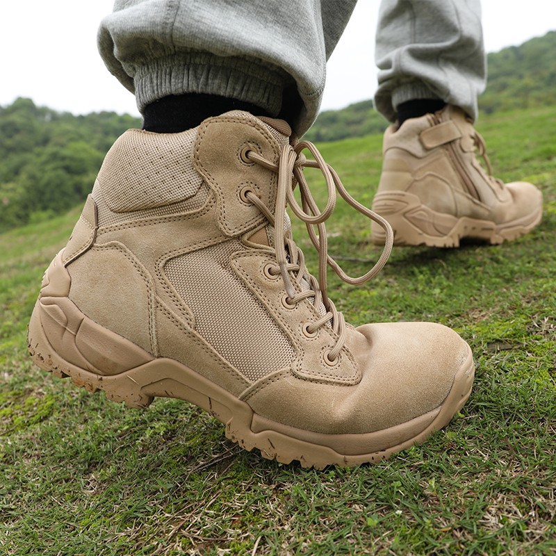 Mens Motorcycle Tactical Boots Side Zipper Military Combat Boots Sand