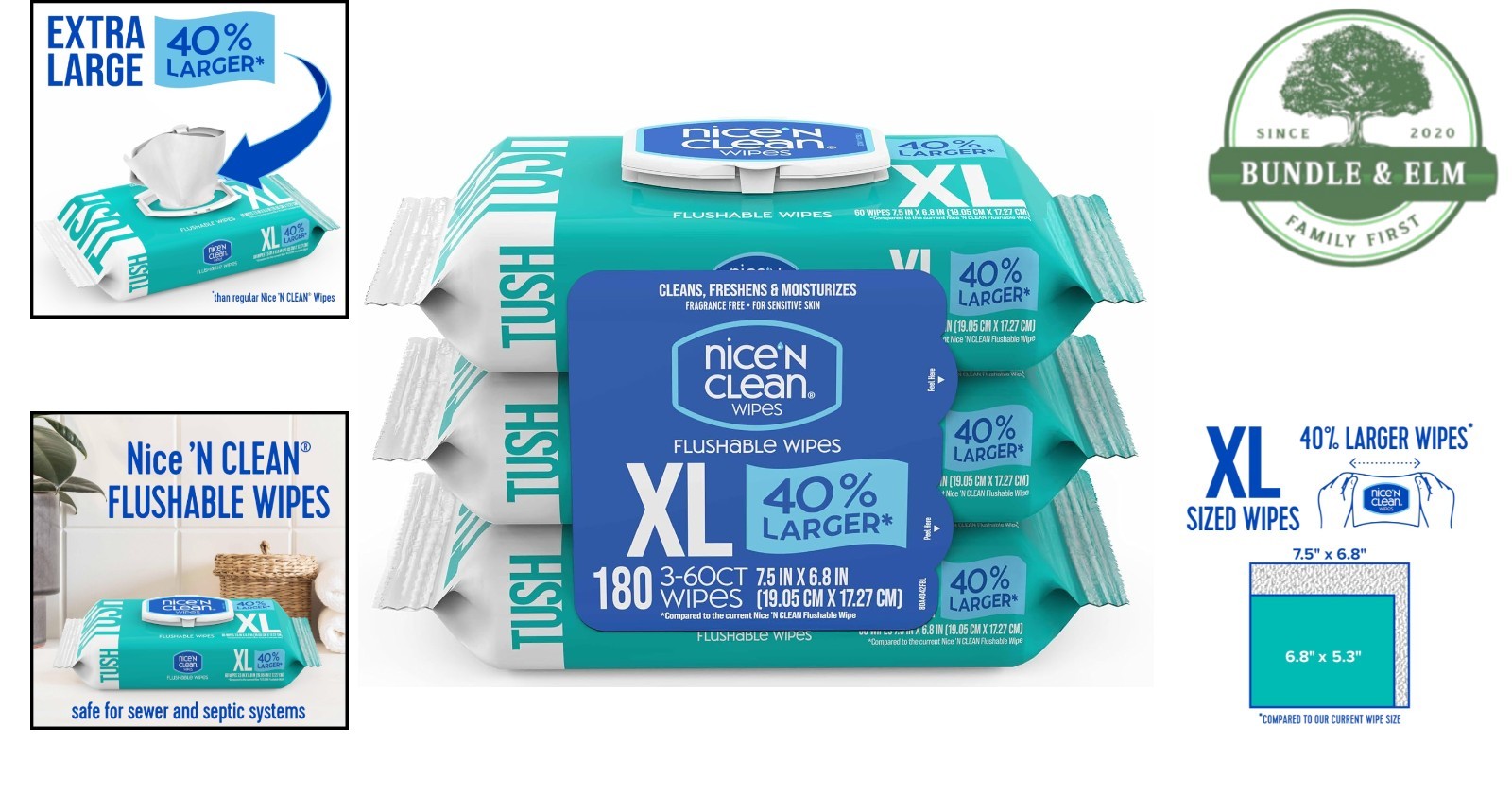 Extra Large Flushable Wipes 40 Larger Unscented Hypoallergenic Septic Safe