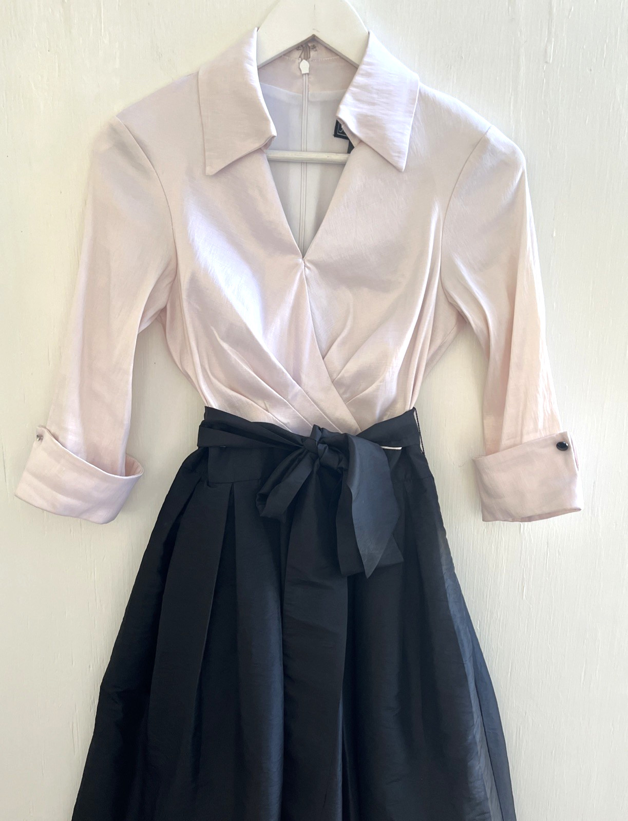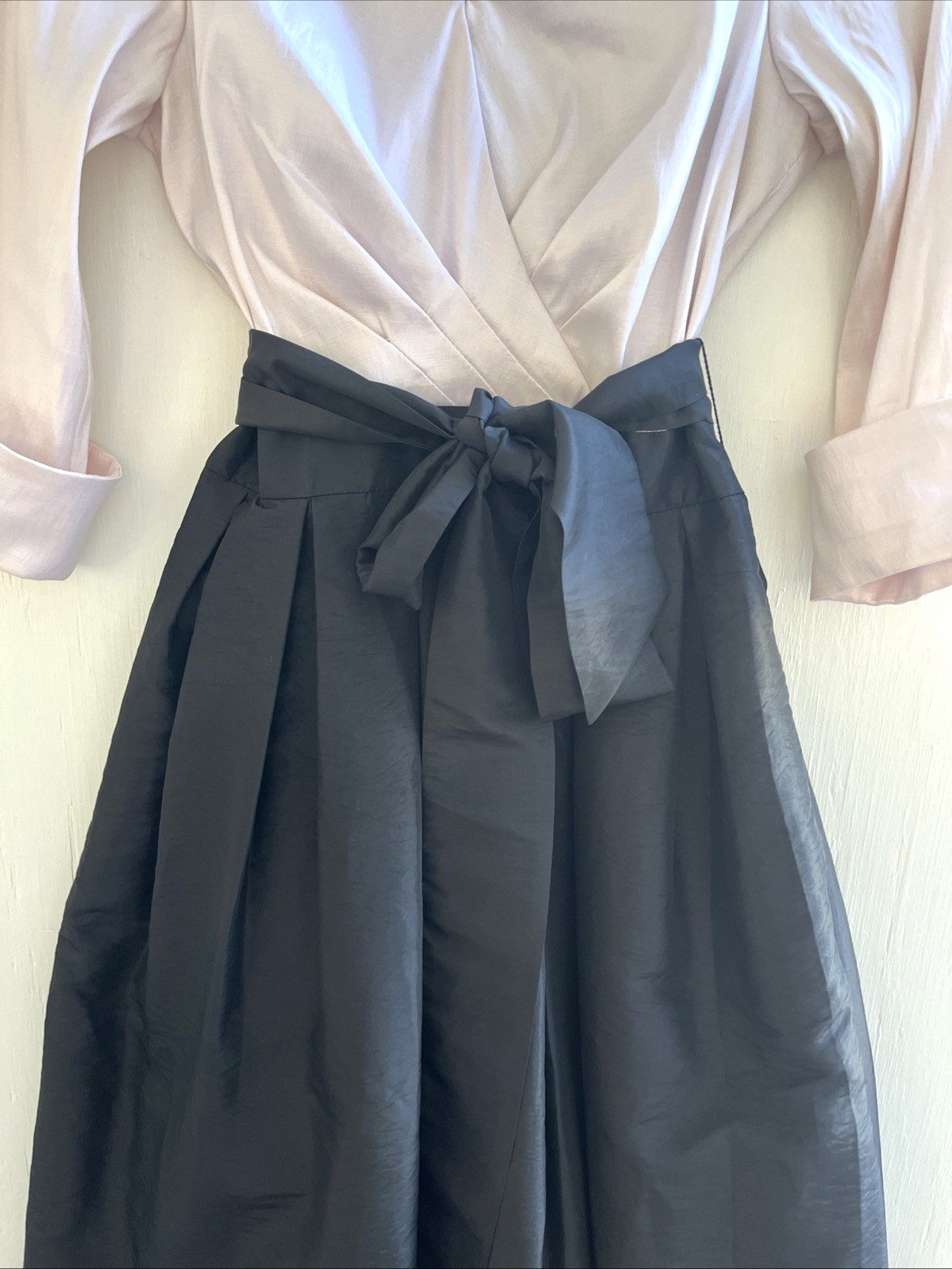 как выглядит JESSICA HOWARD Pink Black Taffeta Maxi Dress Sash Tie Waist Evening Gown 6 EUC фото