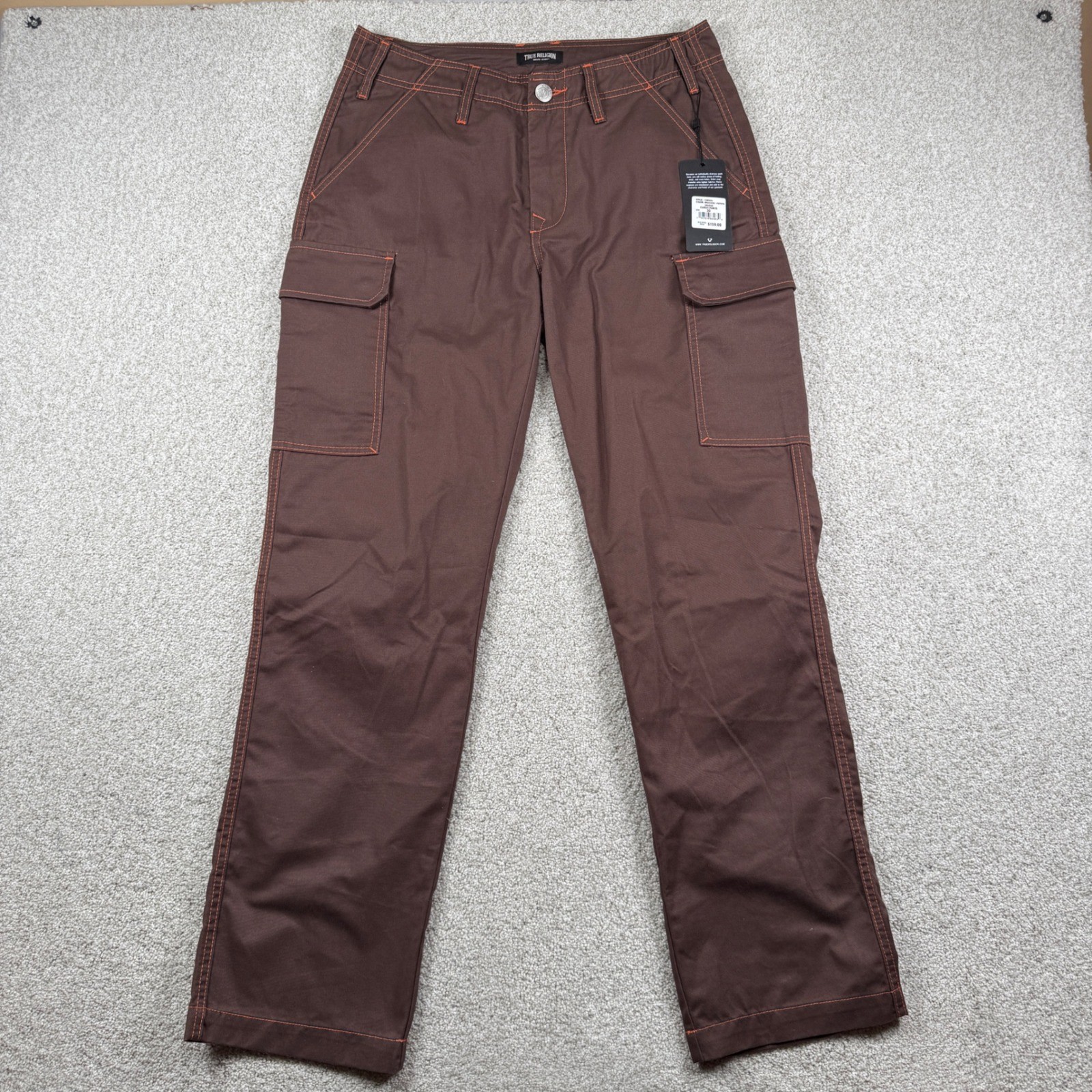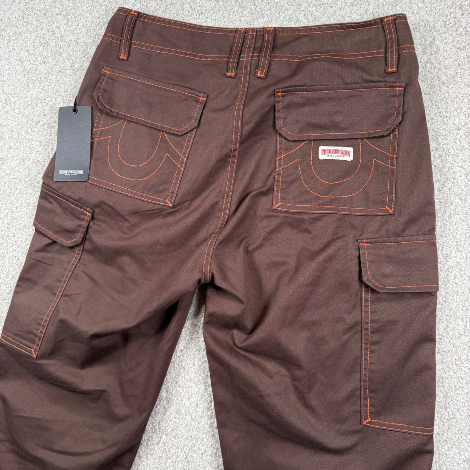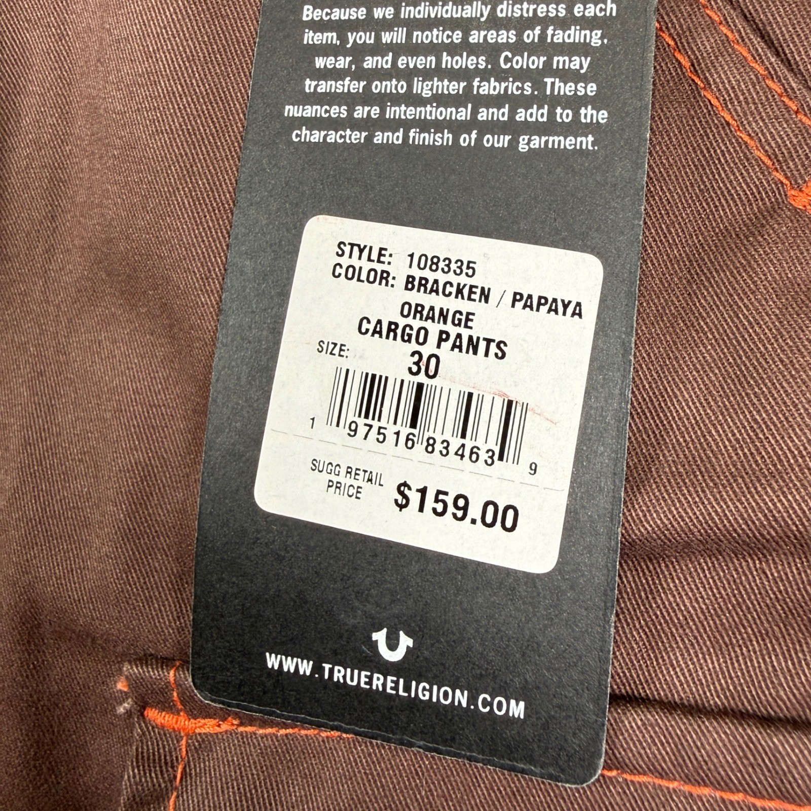 NEW True Religion Cargo Pants Mens 30 Brown Orange Stitching Bracken Papaya