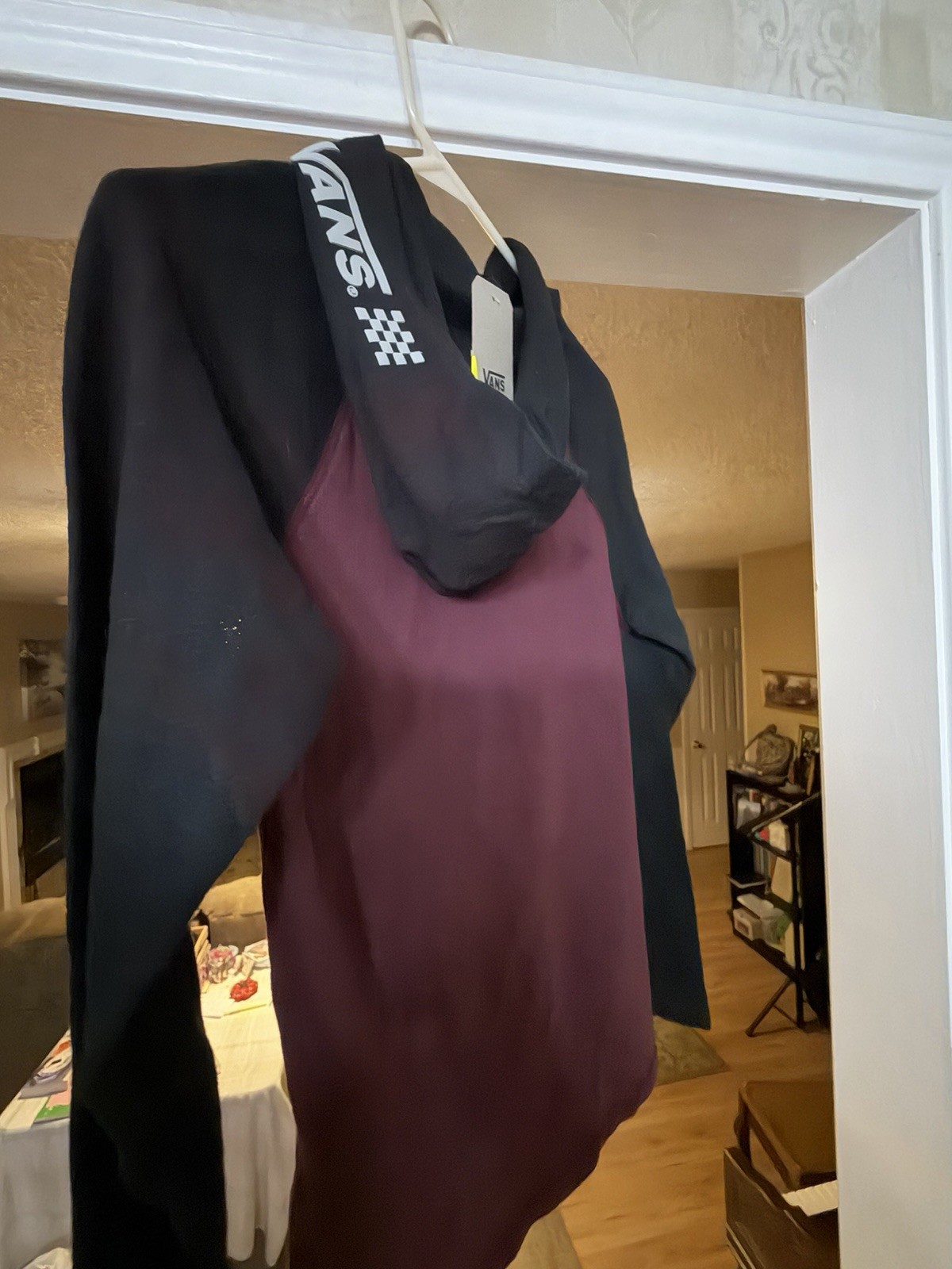 как выглядит Vans Hoodie Youth Large Off The Wall Skater Sweatshirt Wine Black Long Sleeve фото