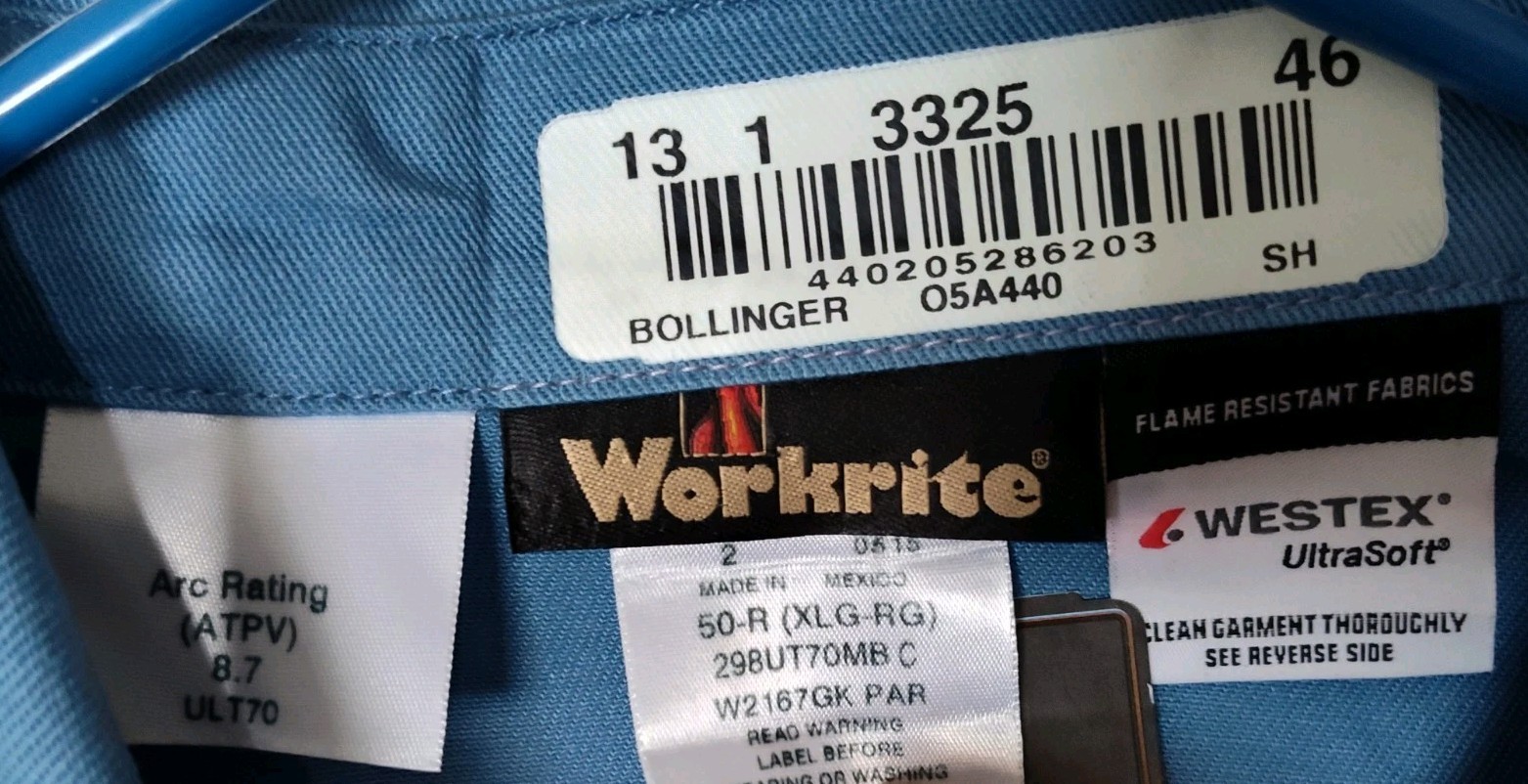 NWT Men's Workrite UltraSoft FR Flame Resistant Work Shirt Arc Rated ATPV 8.7 XL
