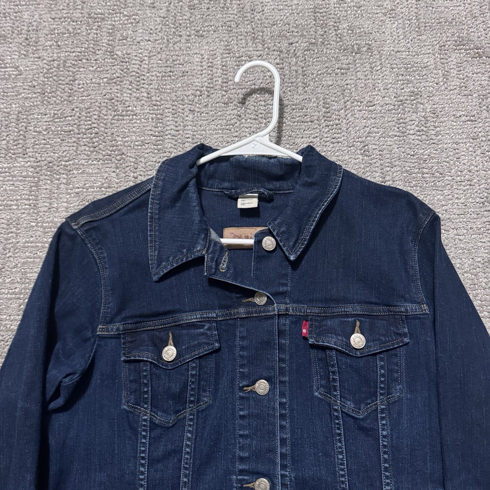 как выглядит Vintage Levis Denim Trucker Jacket Youth Girls XL Dark Blue Casual 19x22.5 Retro фото