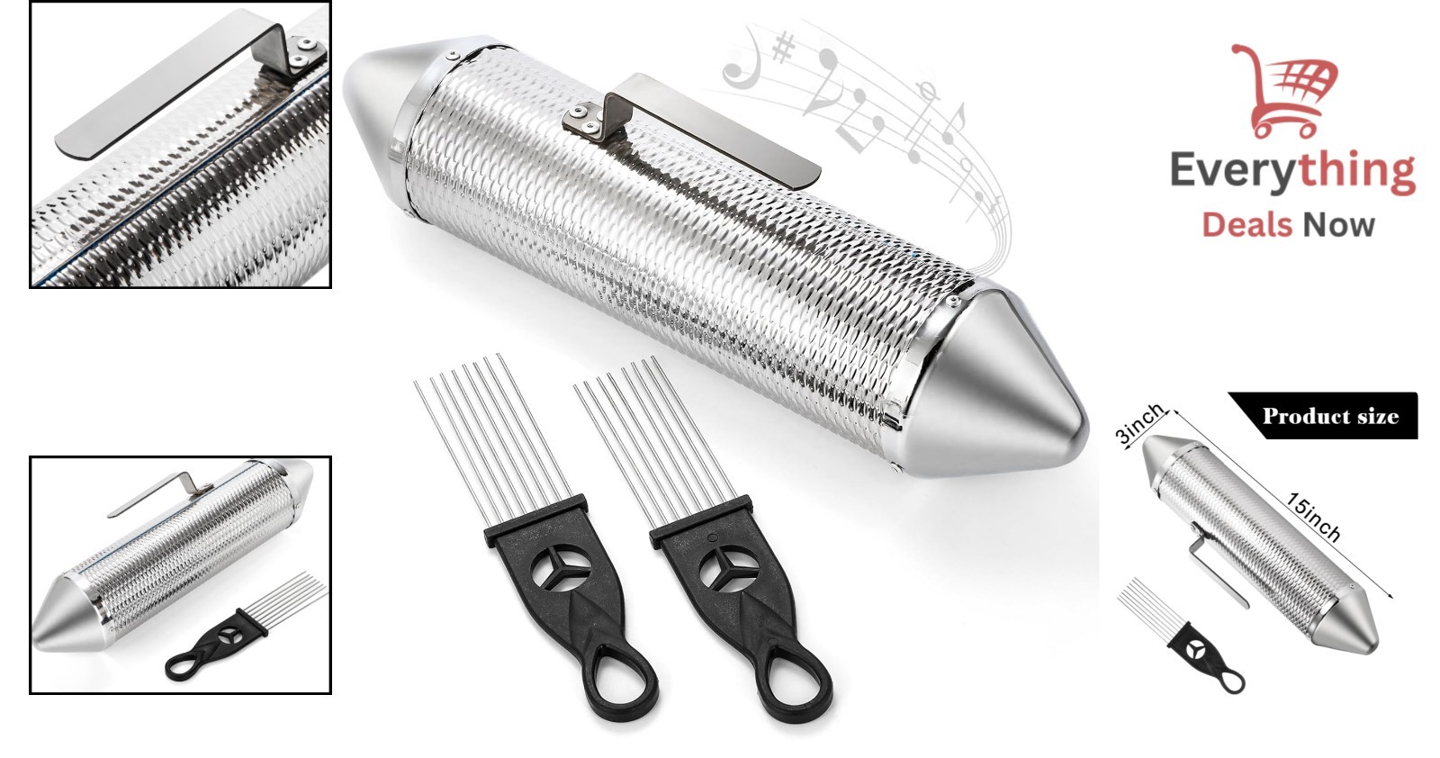 15 Stainless Steel Guiro Shaker Latin Percussion Instrument with 2 Scrapers
