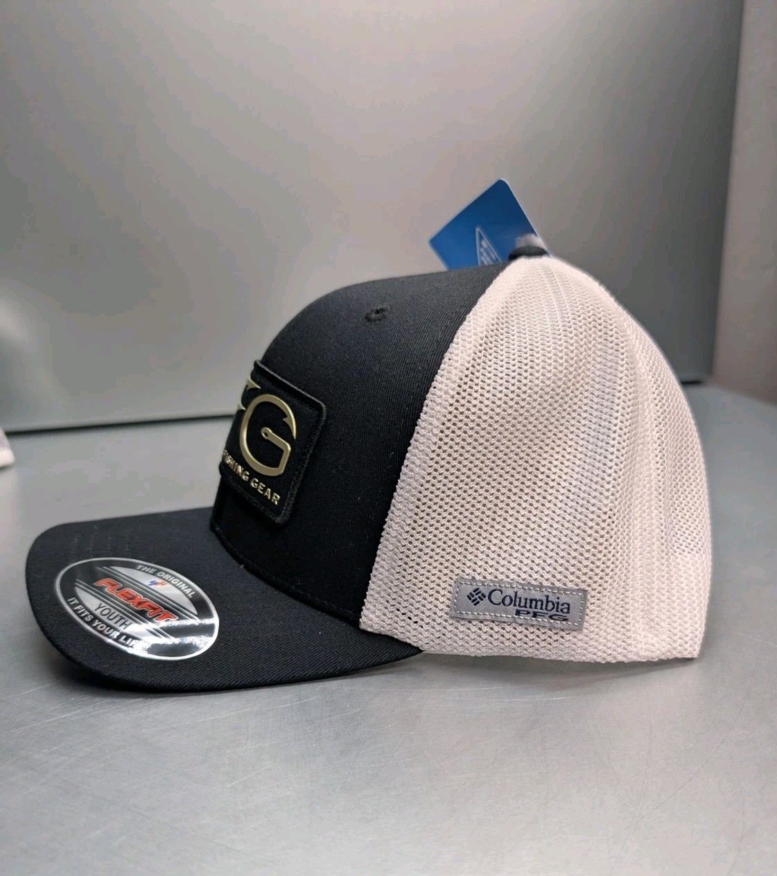 Columbia PFG Youth Flex Fit Mesh Hat Cap Black White One Size Stretch New