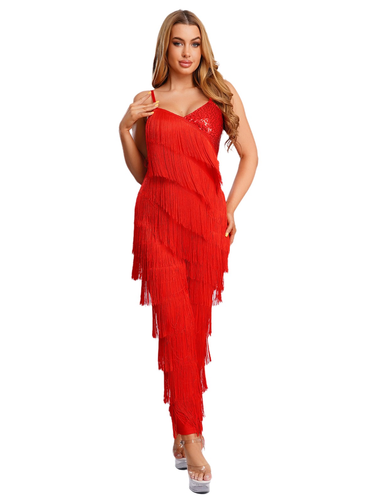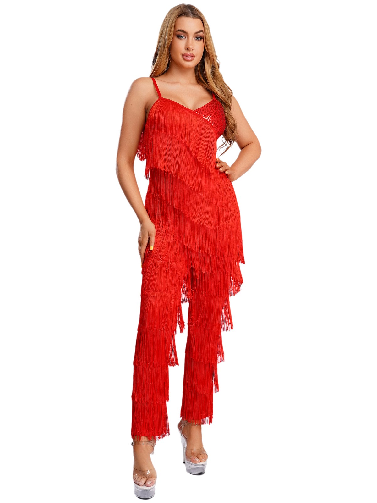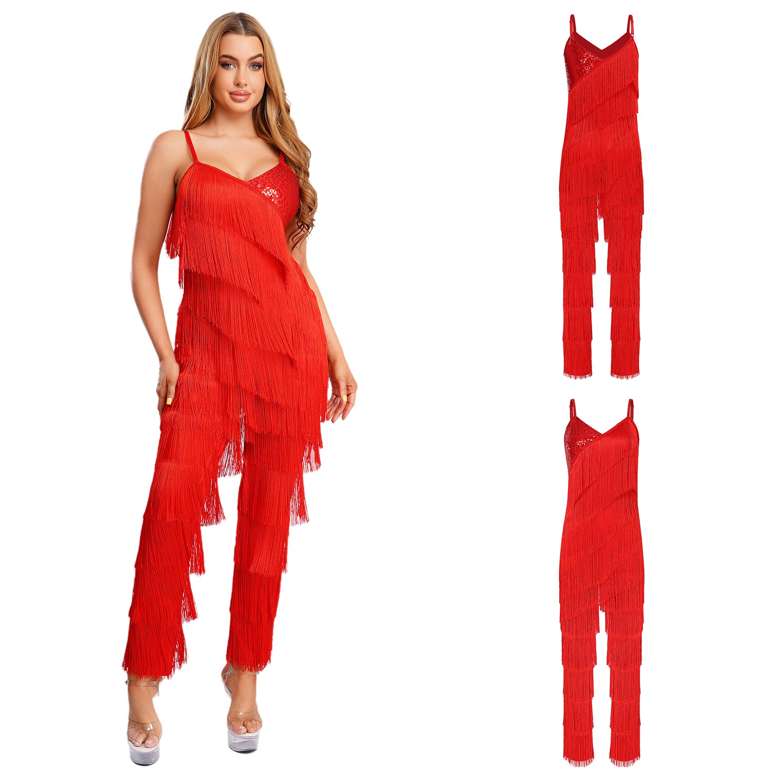 Womens Jumpsuit Music Bodysuit Leotard Rompers Dance Clubwear Cha-Cha Dancewear